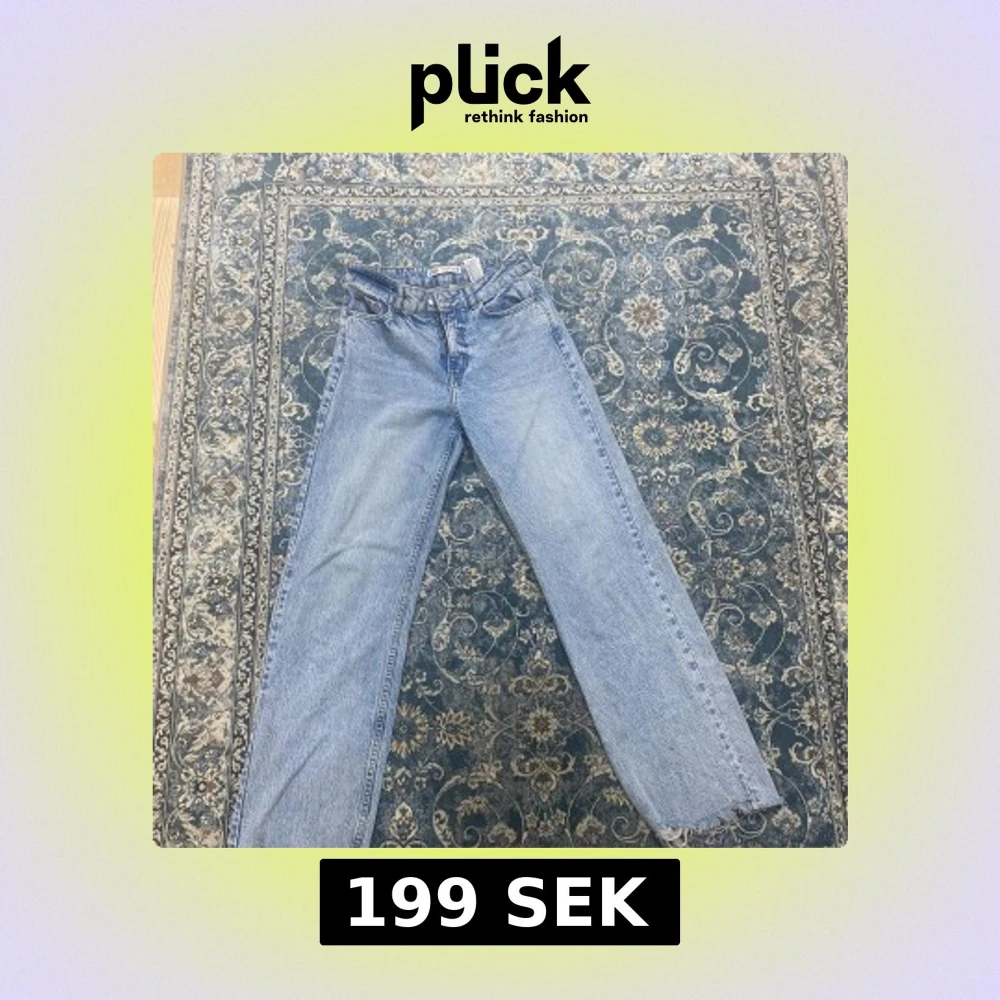 Ljusblå jeans från Zara med rak passform och hög midja. Jeansen har klassisk femficksdesign, dragkedja och knapp framtill samt råa, fransiga benslut för en avslappnad vibe. Tillverkade i bomullsdenim.