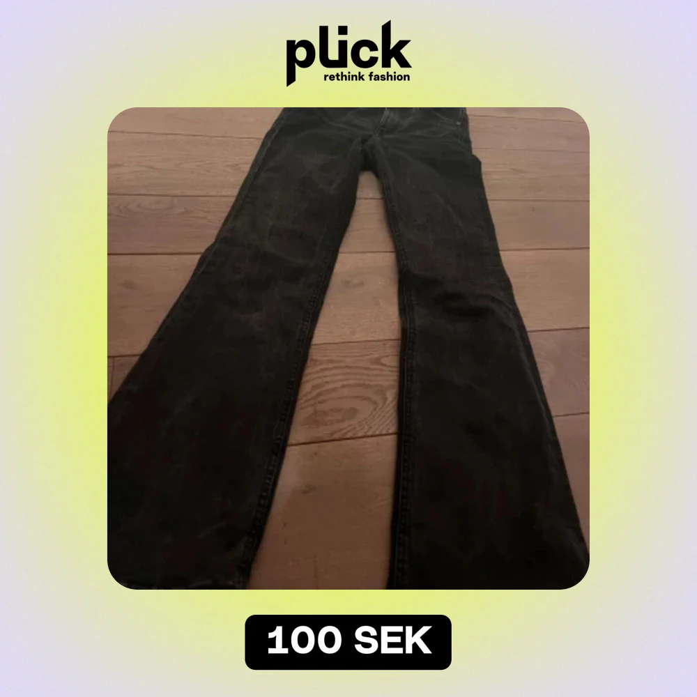 Säljer ett par svarta jeans i bra skick. De har en klassisk design med dragkedja och knapp framtill. Jeansen har en rak bootcut och är perfekta för både vardag och fest. De är tillverkade i ett slitstarkt material som håller länge.