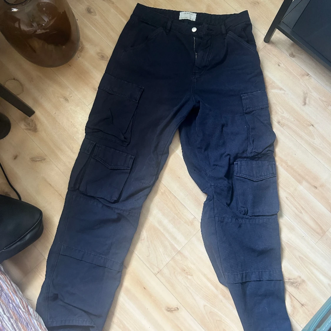 tjock material med fickor på sidan. mörkblå/marinblå. nästan aldrig använda.