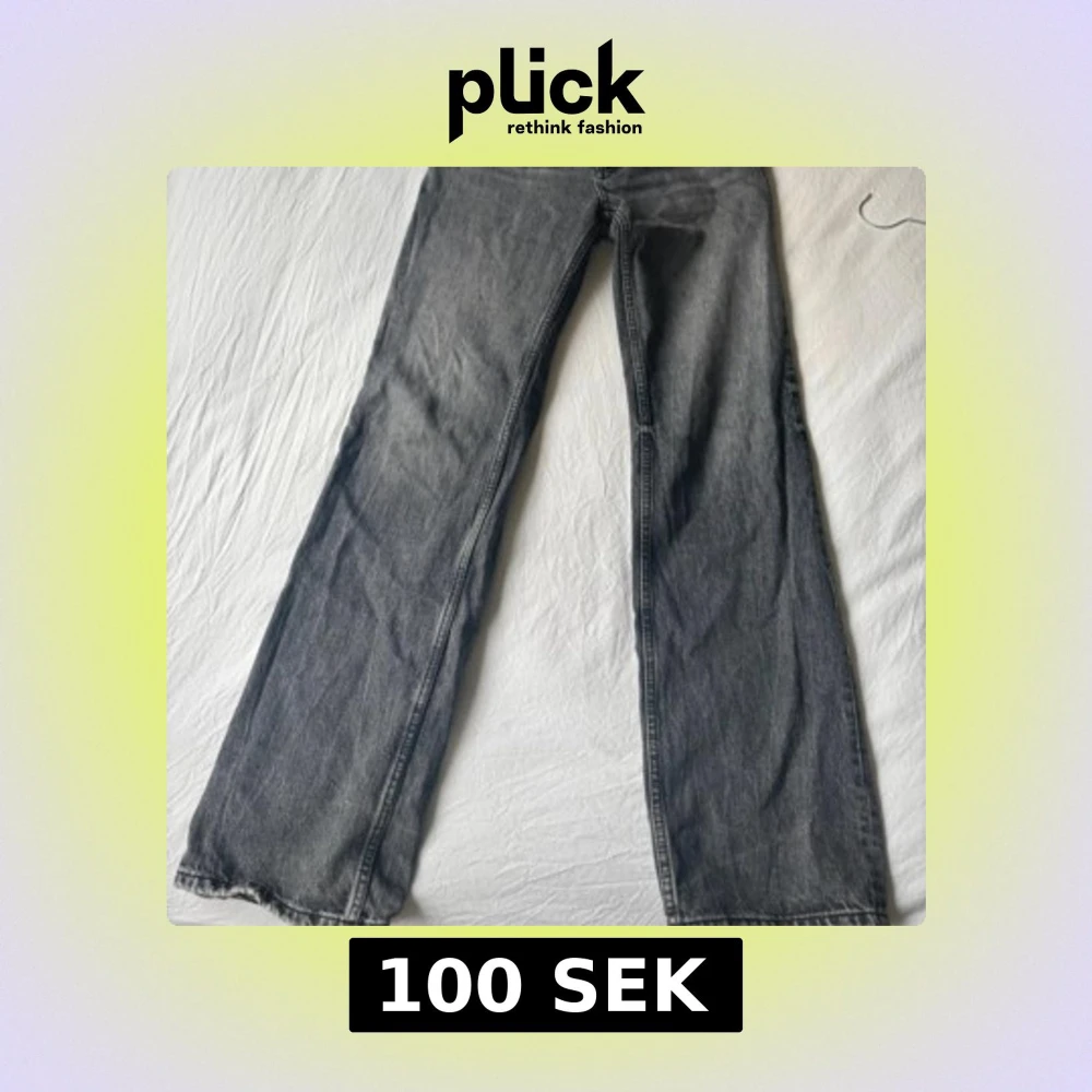 Gråa jeans, lite slitna längst ner