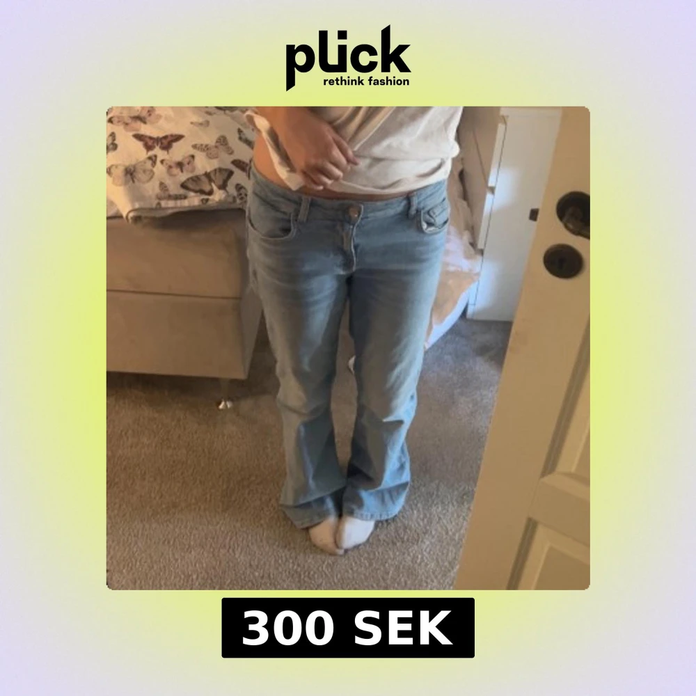 snygga ljusblå lågmidjade bootcut zara jeans, små i storleken 💓