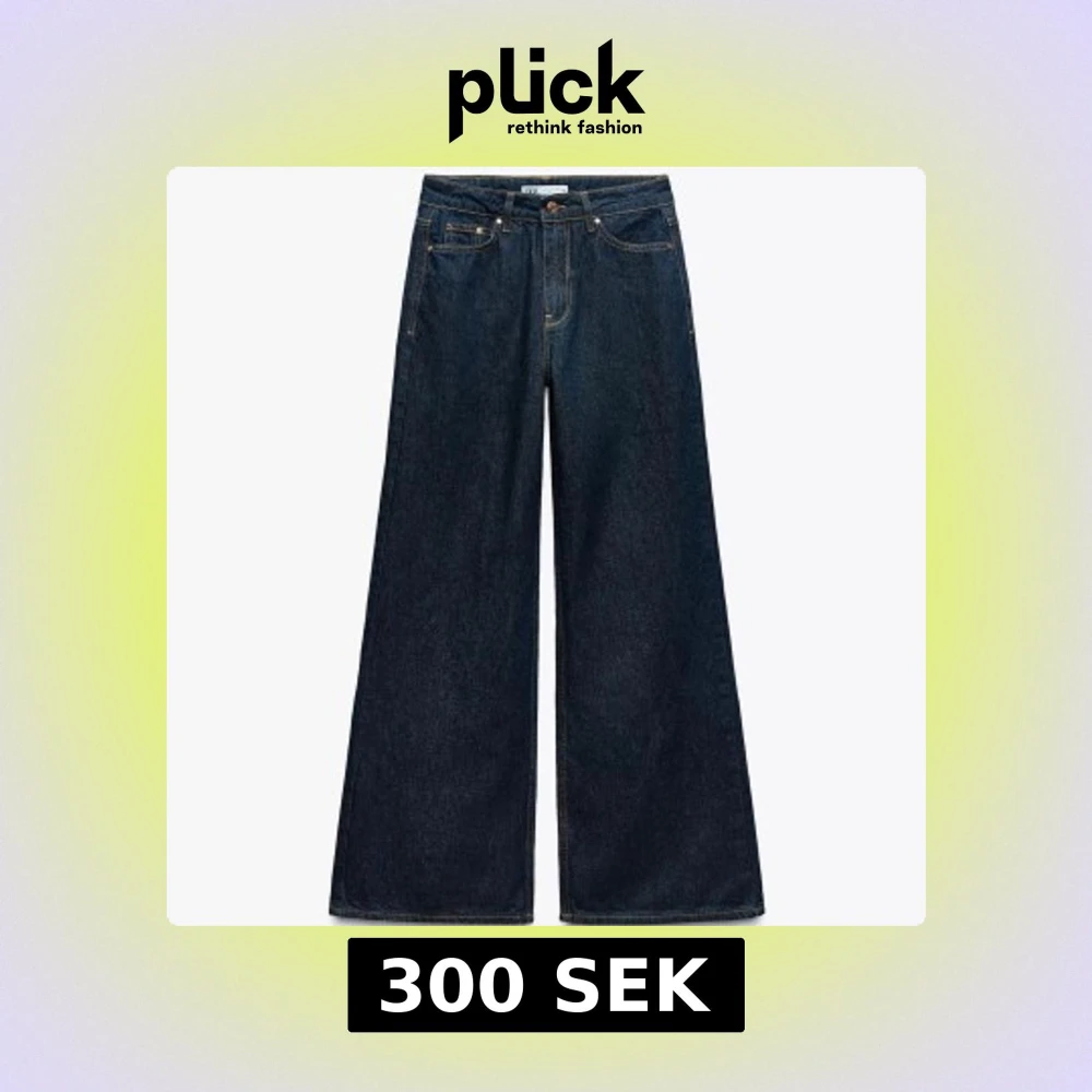 Snygga mörkblå jeans från Zara med breda ben och klassisk femficksdesign. Jeansen har hög midja och raka, vida ben för en trendig och avslappnad look. Perfekta att styla med sneakers eller boots.