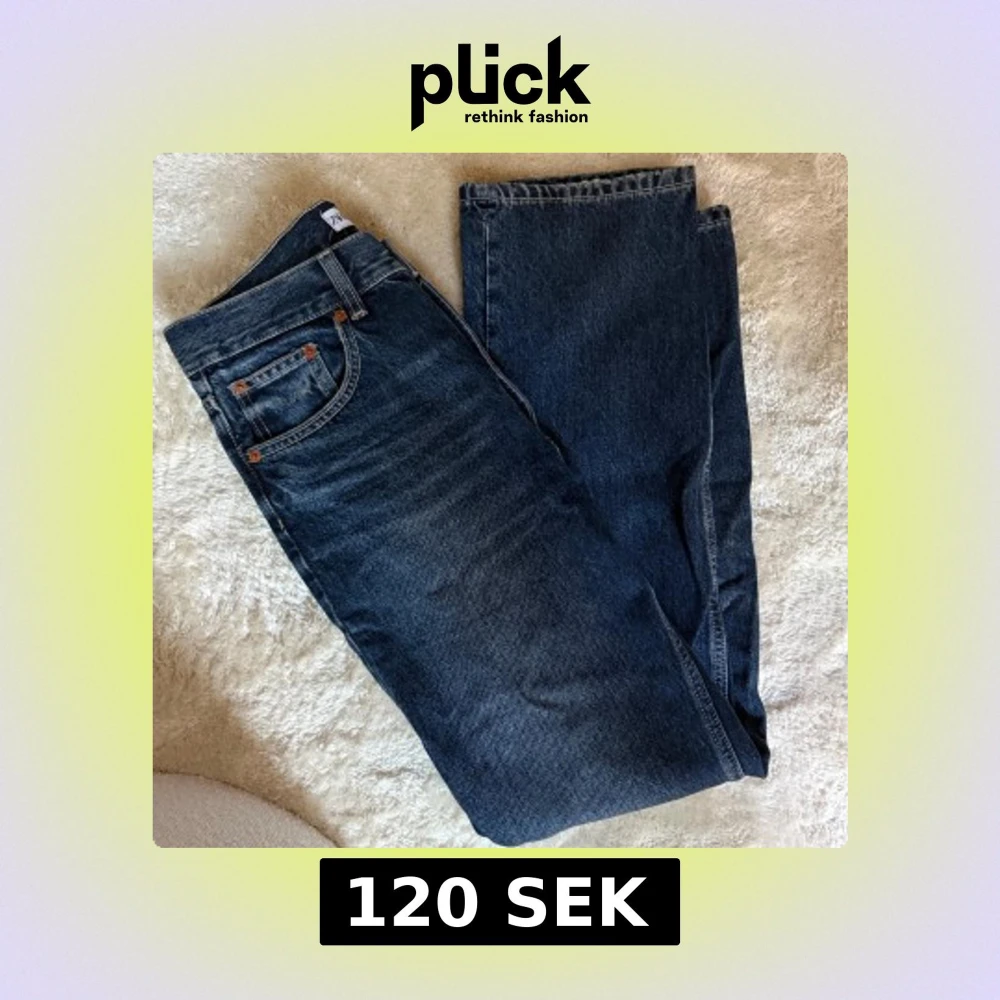 Snygga mörkblå jeans från Zara med klassisk femficksdesign och raka ben. Jeansen har kontrastsömmar och är tillverkade i ett robust denimtyg som ger en tidlös look.