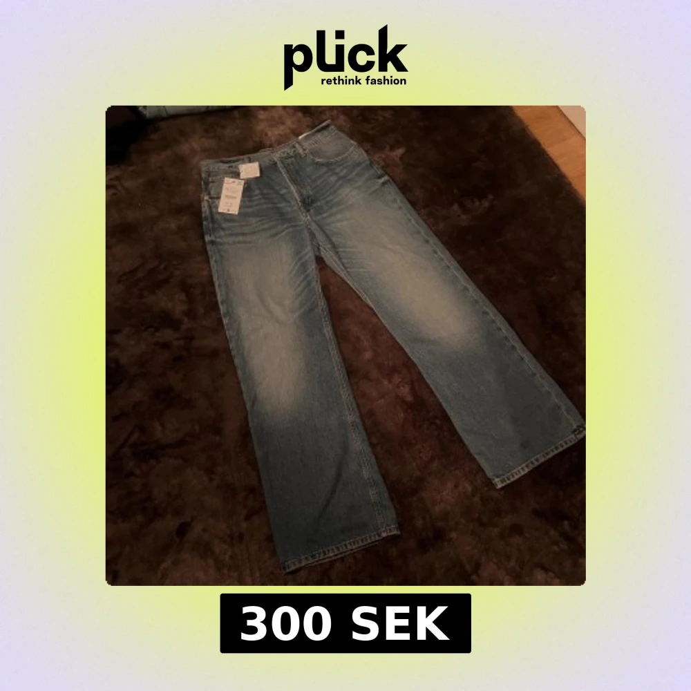 Säljer ett par blå baggy flare jeans från Zara i storlek 42.