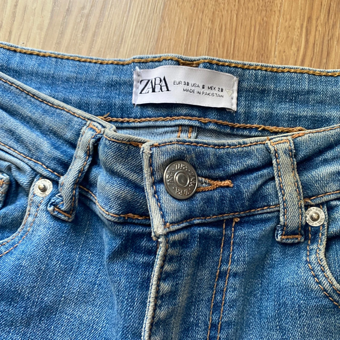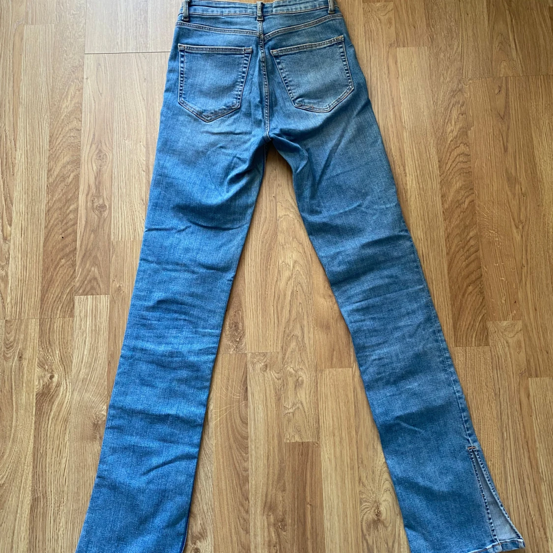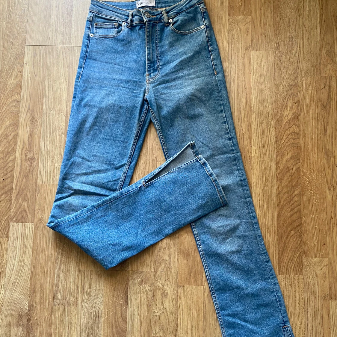 Superfina Zara jeans med slits längst ut på benen. Är ca 38 cm över midjan, ca 27 cm från benen upp till midjan och ca 108 cm i ben längd. Är i stolek 38 och passar perfekt till vardags. Har en söm som gått upp på baksidan men inga andra defekter. Hör gärna av er vid frågor!💕