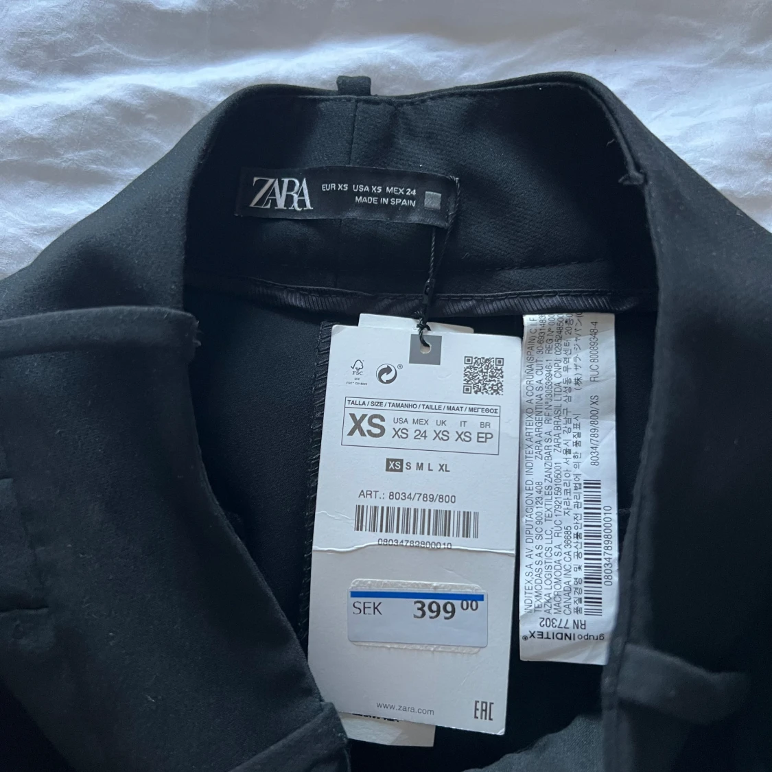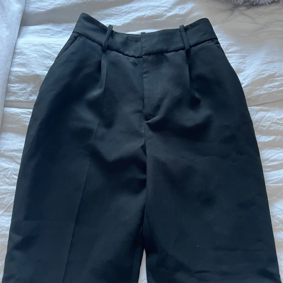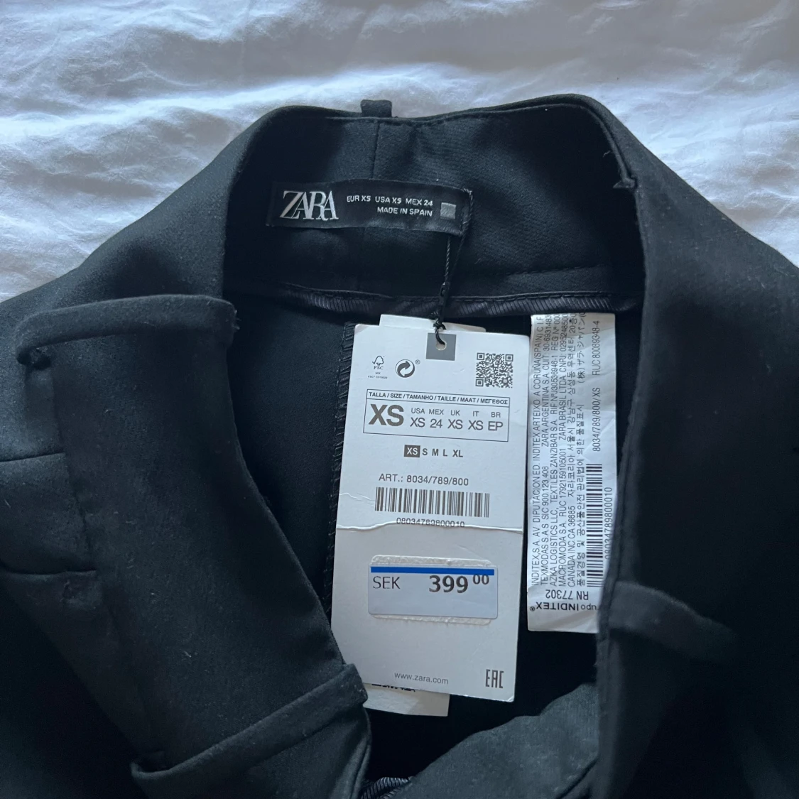 Snygga svarta kostymbyxor från Zara i storlek XS. Byxorna har en klassisk design med hög midja och raka ben, perfekta för en stilren look. Tillverkade i ett bekvämt material som passar både till vardags och mer formella tillfällen.