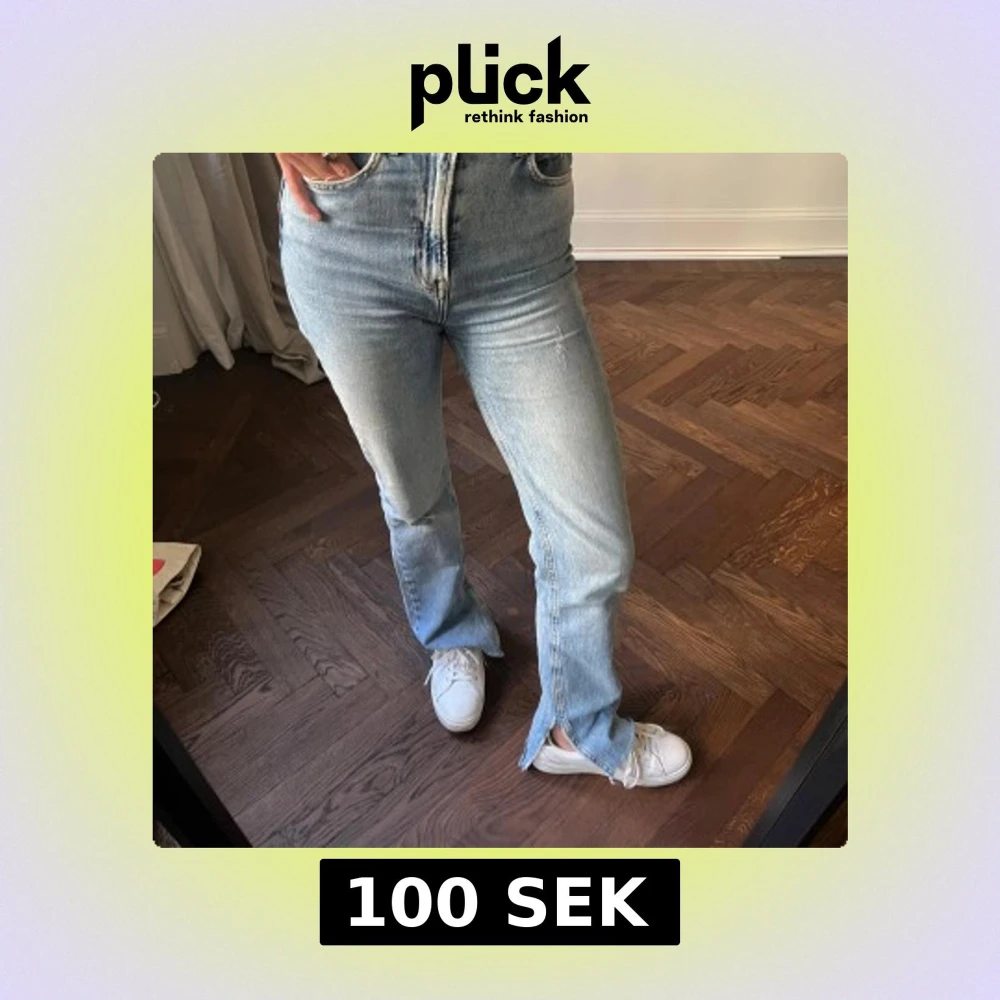 Snygga blå jeans från Zara med hög midja och en rak passform. Byxorna har en slits vid anklarna som ger en trendig touch. Perfekta för en avslappnad stil med sneakers eller klackar.