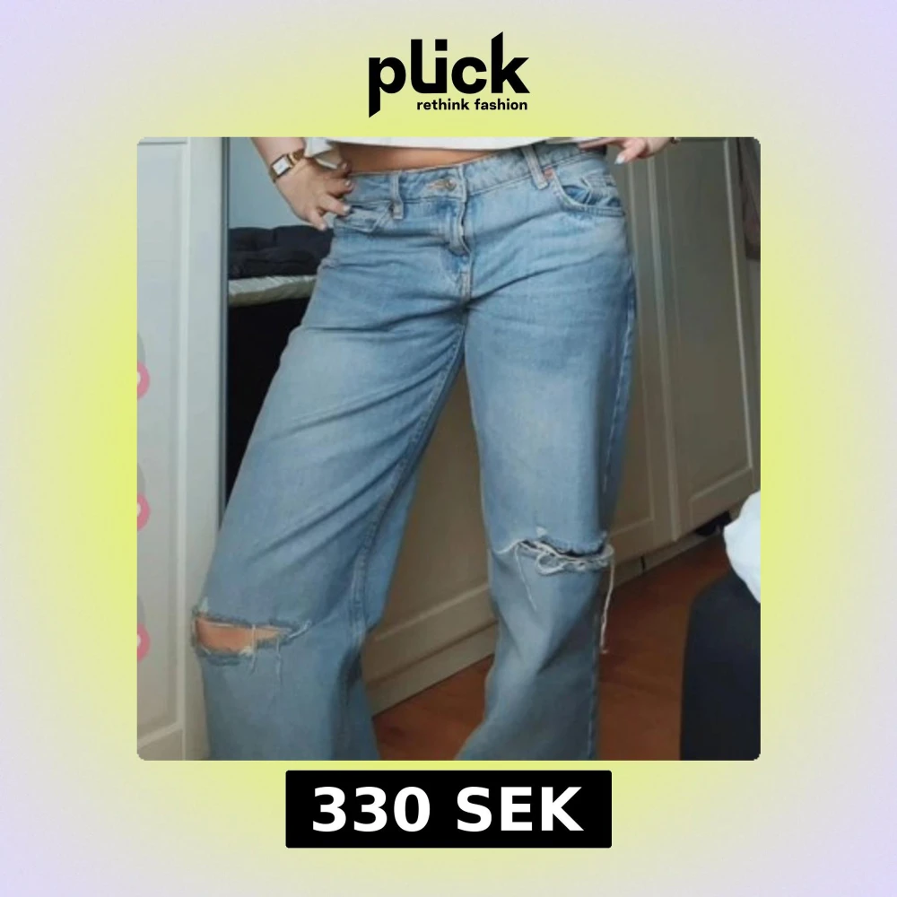 Snygga ljusblå jeans från Zara i wide fit med slitna detaljer och hål på båda knäna. Bara använda 1 gång. Sitter bra app mig som igentligen har st.34.Kan förhandla om priset🩷