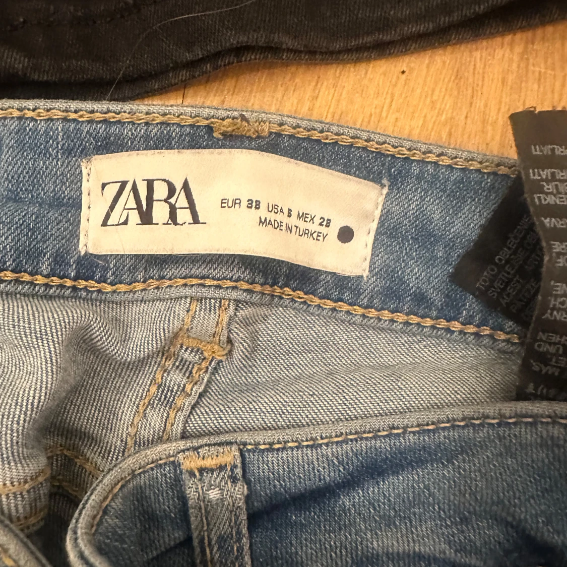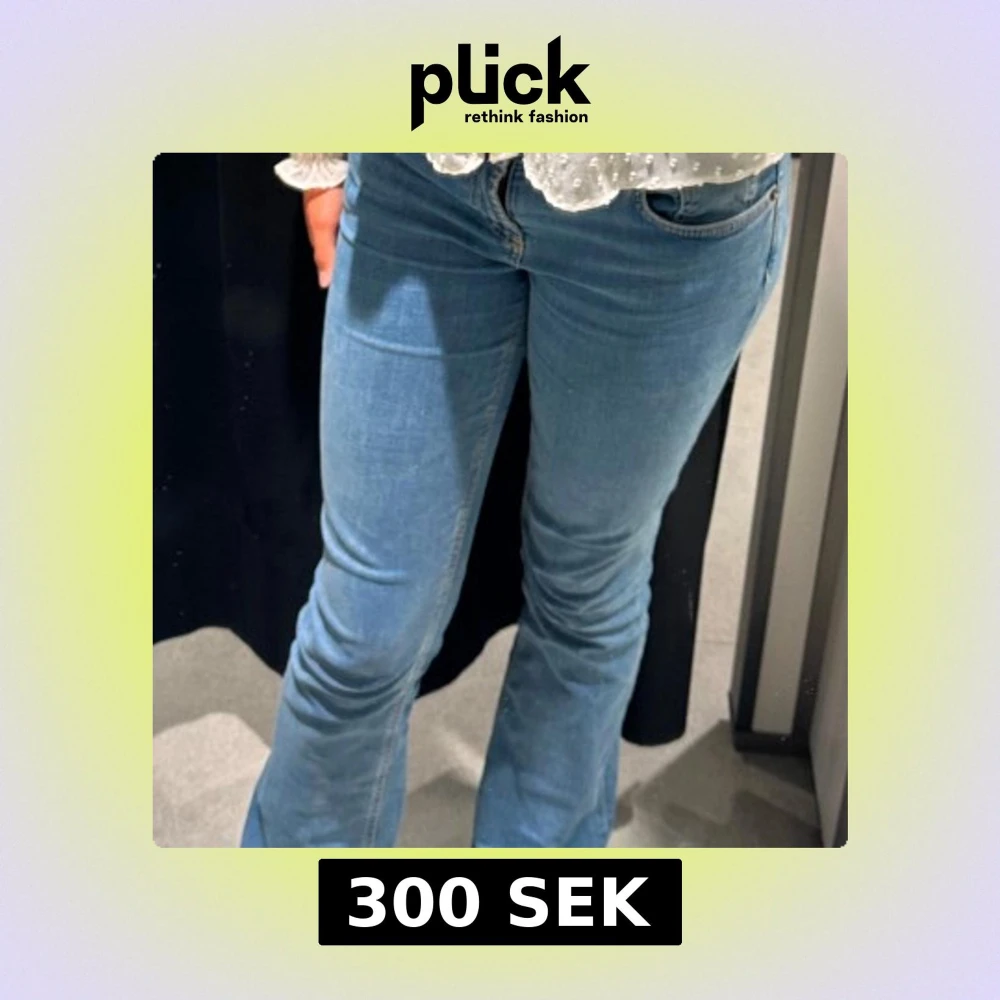 Säljer ett par snygga blå jeans från Zara. De har en klassisk bootcut-stil och är perfekta för en avslappnad look. Jeansen är tillverkade i ett bekvämt denim-material och har en låg midja. nypris 400