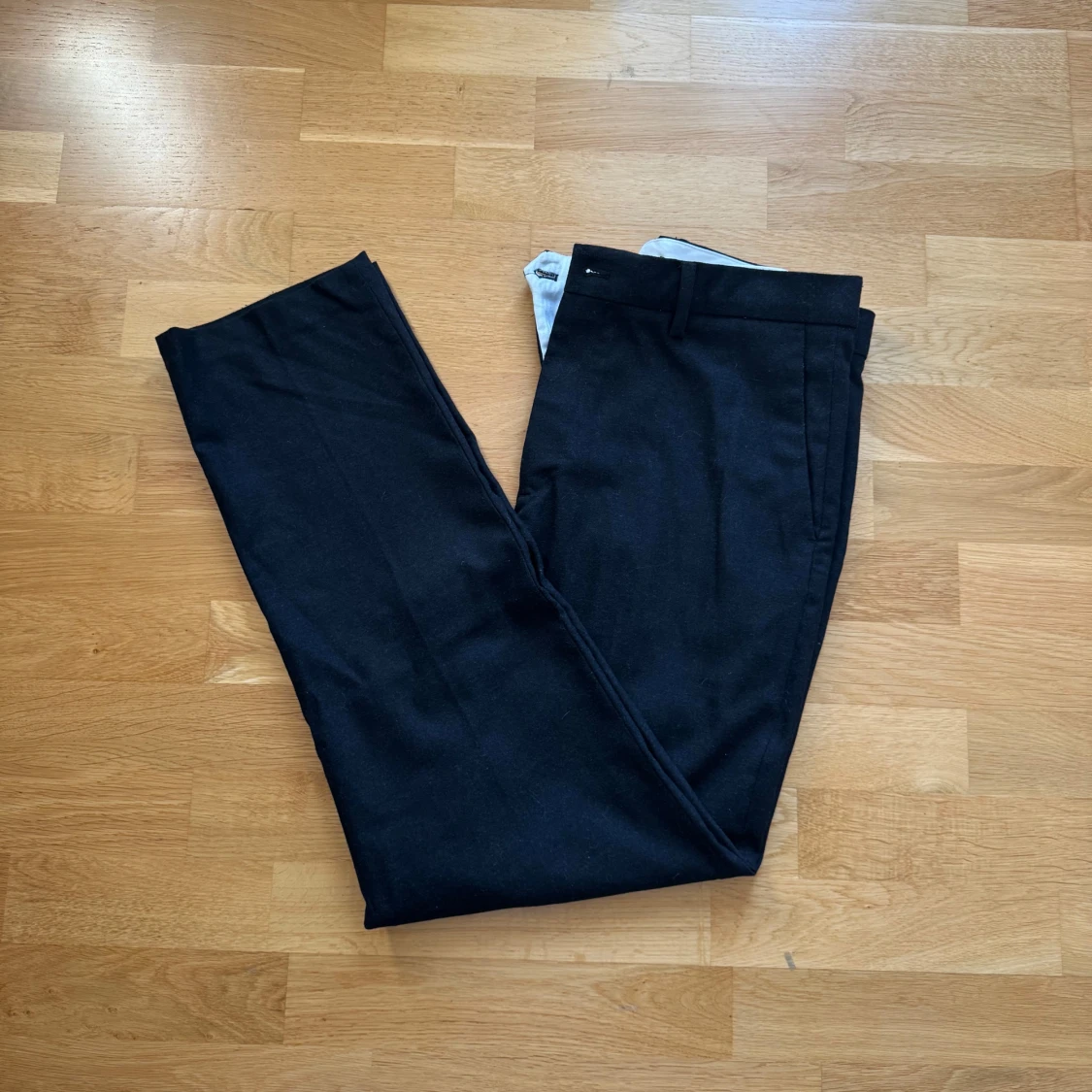 Snygga svarta kostymbyxor från Zara med klassisk rak passform. Byxorna har hällor för bälte, diskreta fickor och är tillverkade i ett mjukt tyg som känns bekvämt hela dagen. Perfekta för en stilren look.