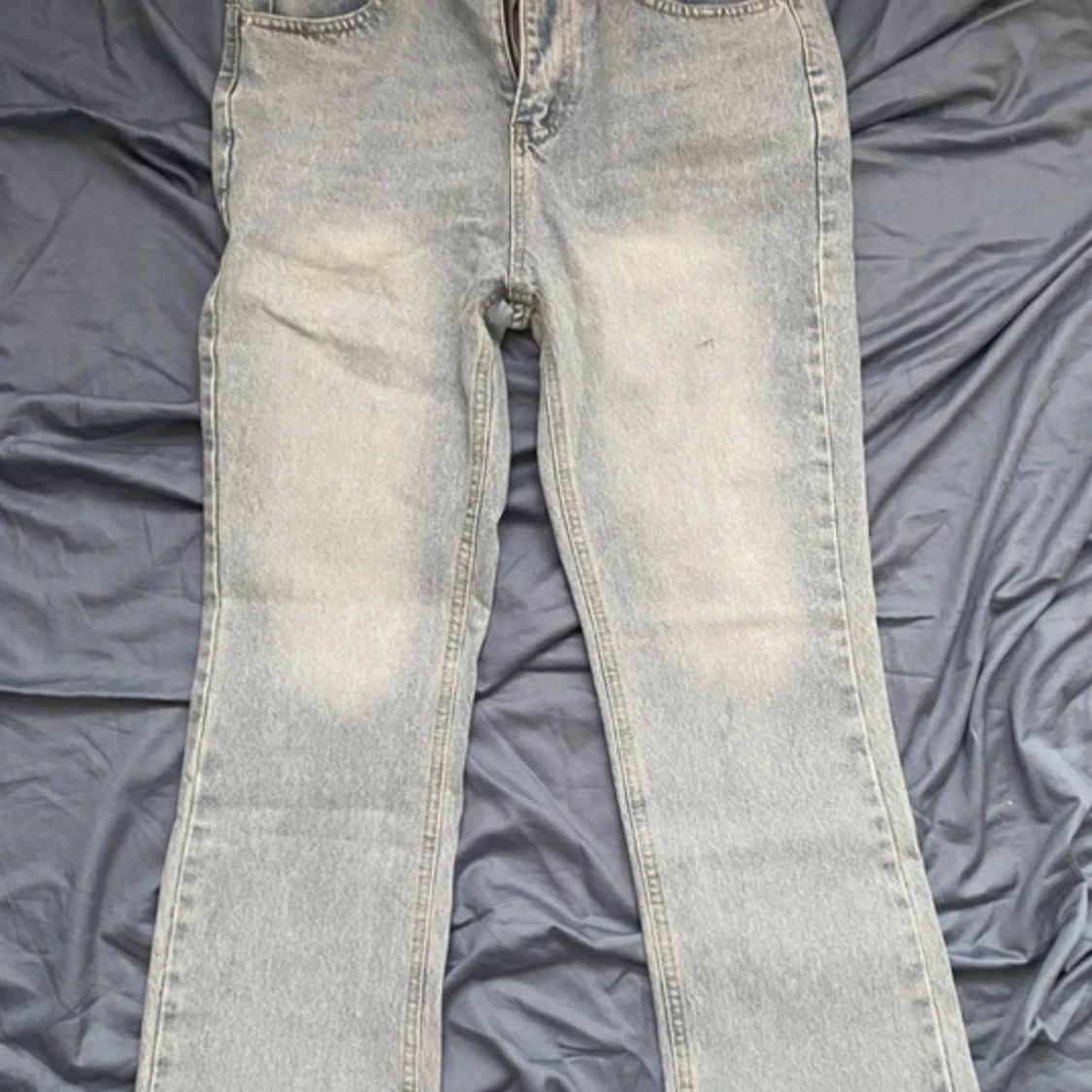 Snygga bootcut jeans i ljusgrå tvätt med klassisk femficksdesign. Jeansen har raka ben med lätt utsvängning nedtill och är tillverkade i mjukt jeanstyg. Perfekta för dig som gillar retrovibbar och vill ha en chill look.