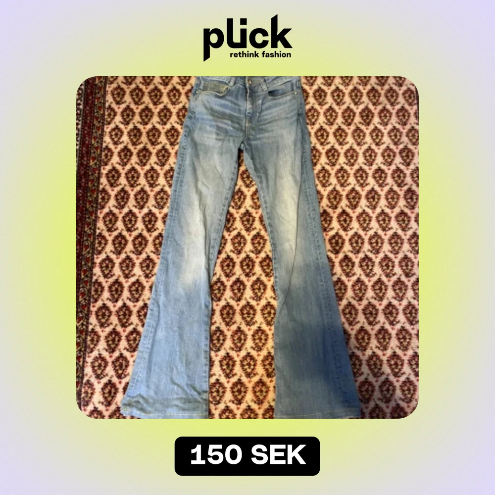 Super sköna flared jeans några defekter som man ser på sista bilden men i perosn märker man inte det💕 dom är insydda i botten för dom var för långa för mig men det går att sprätta upp till normal längd💕 midja:35/36cm insydd längd: 109 cm