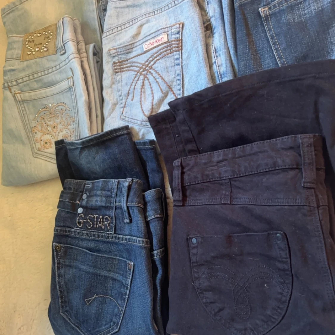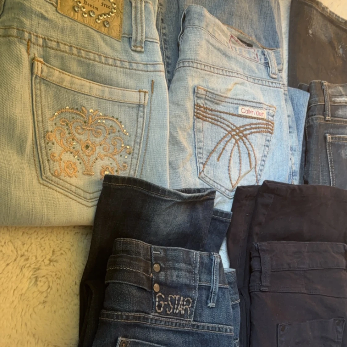 lågmidjade bottcut/flare jeans som antingen inte kommit till användning eller ej passar. ringa in de jeans du är intresserade av så får du info om storlek, mått och pris. jeasnen kommer att ligga på 500-600 st då de är bra skick och unika/vintage