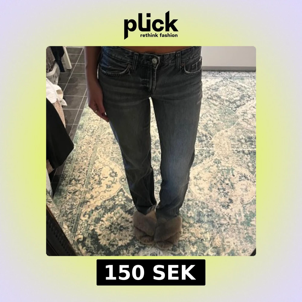Säljer ett par mörkgrå jeans med raka ben från Zara. Jeansen har medelhög midja och en snygg tvättad look.
