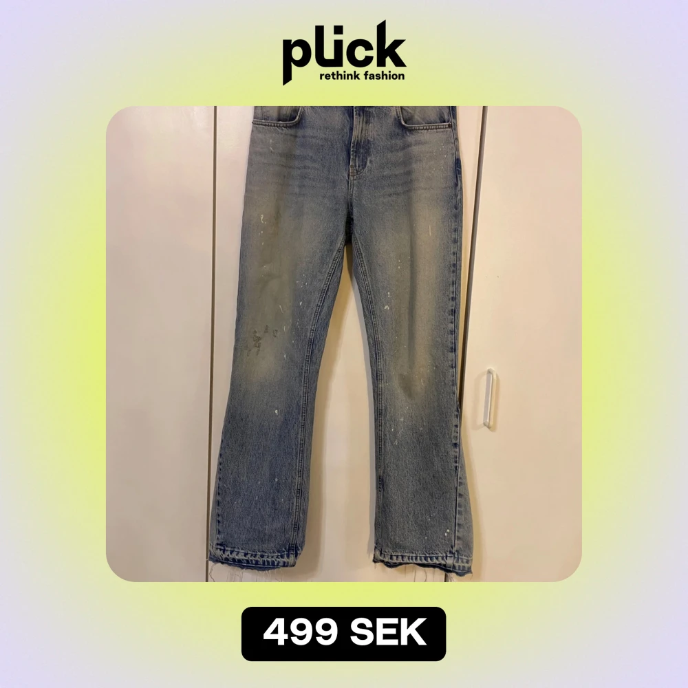 Säljer ett par snygga blå jeans från Zara i storlek 42. De har en avslappnad passform med slitna detaljer och råa kanter vid bensluten för en cool look. Perfekta för en casual stil och kan matchas med nästan vad som helst. Inte använt mer än 2 gånger i och med dom är långa för mig. Är 173cm. Nypris är 700kr. Priset går diskutera