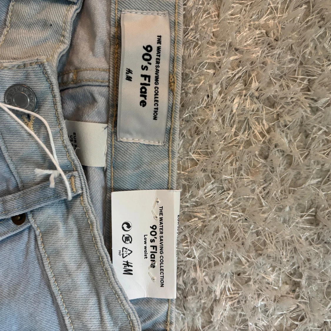 Såå snygga lågmidjade jeans från HM i en flare modell. Aldrig använda då de tyvärr inte passar mig, så lapparna är kvar 💕 Kan skicka bilderna privat där man ser hela jeansen så det inte fick plats i inlägget 🥰