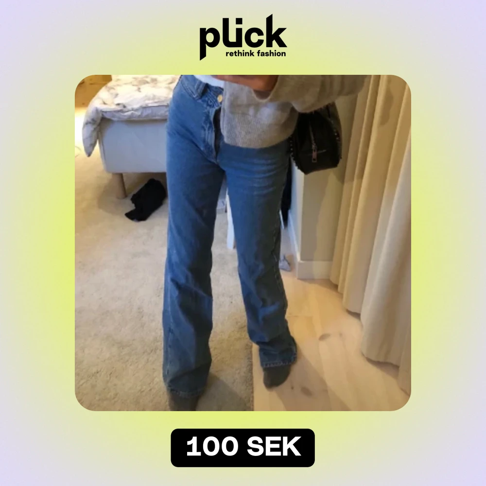 Jätte söta jeans från zara i storlek 32! Säljer för att de inte kommer till användning! Är en ljusare nyans av blått i verkligheten❤️