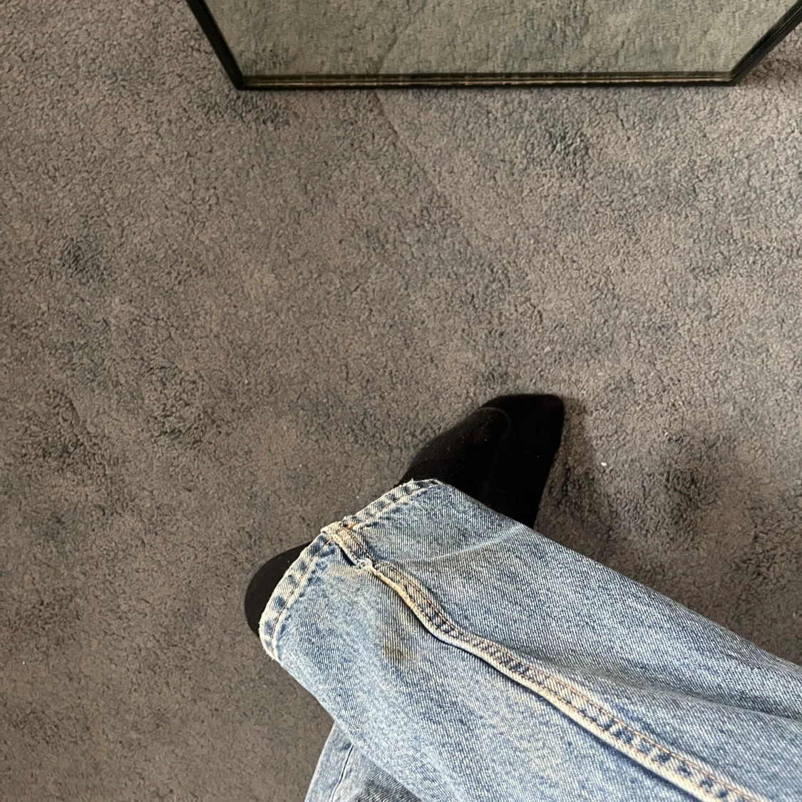 Raka midrise jeans från Zara Passar mig bra som har storlek S och är 165 cm De har en missfärgning som syns på sista bilden men eftersom den är på insidan av byxorna märks den knappt!