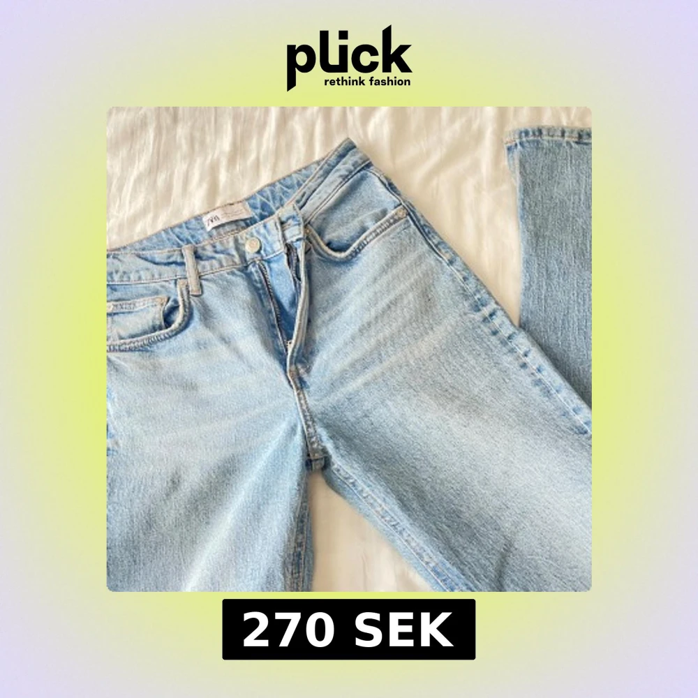 Populära midwaist jeans från Zara med slits nedtill. Passar även 36. Liten defekt längst ned, men inget märkvärdigt.
