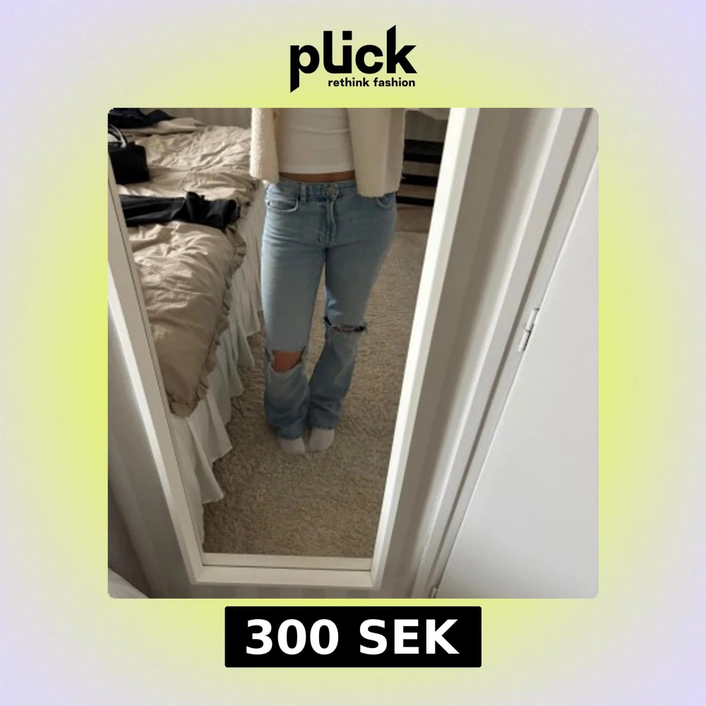 Säljer dessa Zara jeans i storlek 36, själv gjort hålen på jeansen💞