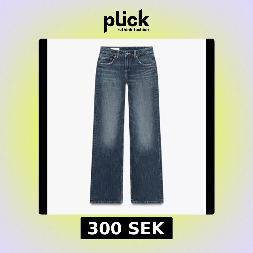 Mörkblåa jeans ifrån zara med breda, raka ben och låg midja. Dem är inte använda så mycket men något slitna längst ner 🥰 nypris 400