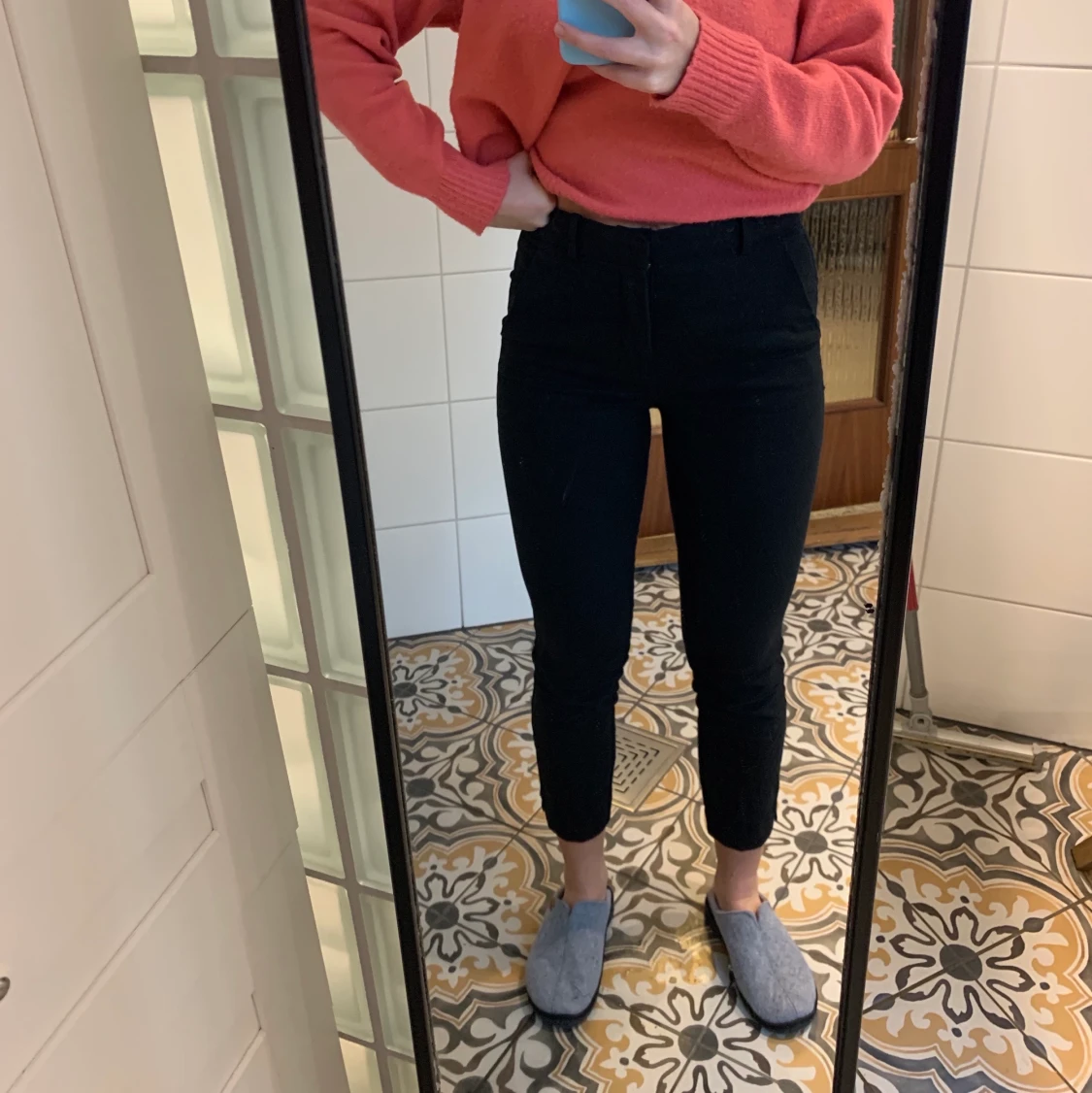 Säljer ett par svarta tighta kostymbyxor från Zara!! De är i väldigt bra skick, knappt använda. Storlek: 34. Jag säljer byxorna för 100kr ink frakt 🌸🌸