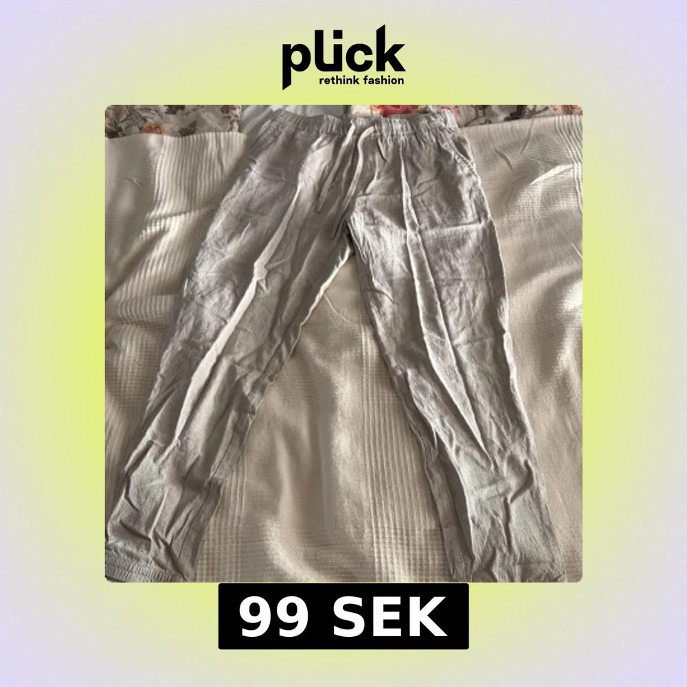 Snygga beige linnebyxor från Zara i storlek L. Byxorna har elastisk midja med snörning och avslappnad passform. Perfekta för chill dagar eller när du vill ha en soft och luftig stil. Fickor på sidorna och baktill för extra funktion.