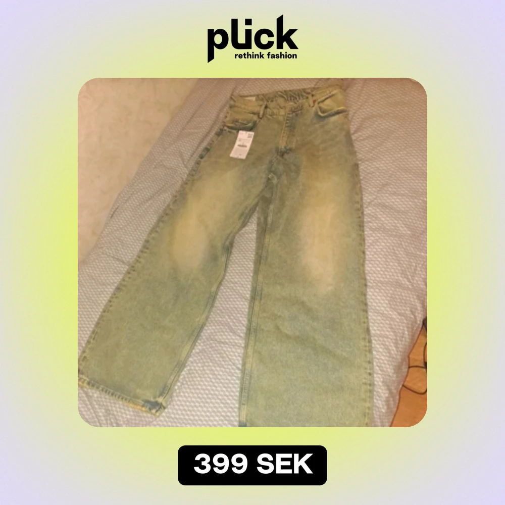 Ljusblå baggy jeans  - Säljer ett par superfina ljusblå baggy jeans från hm, säljer då de tyvärr inte kommer till användning. Storlek 34 och knappt använda💓