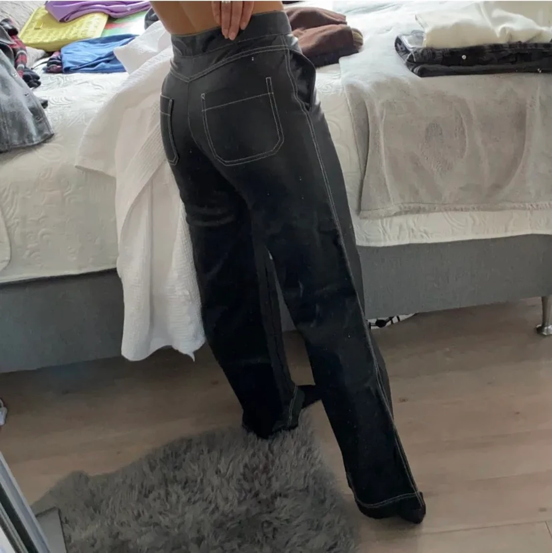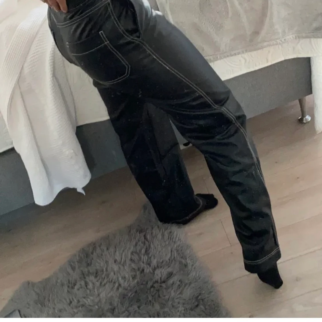 Säljer mina favoritläderbyxor med vita detaljer från Zara, säljer då de tyvärr blivit för små för mig. De är lågmidjade och asballa!💕