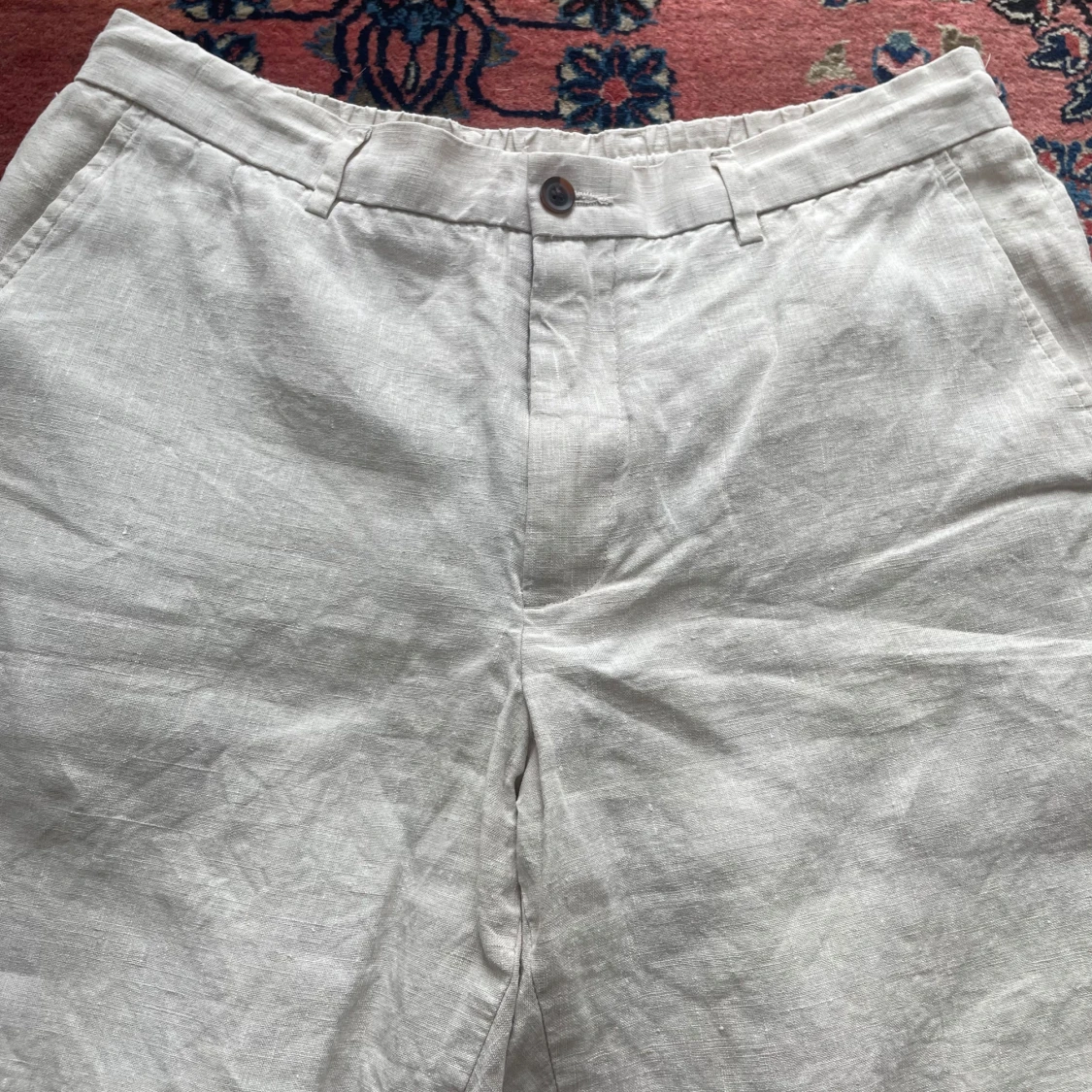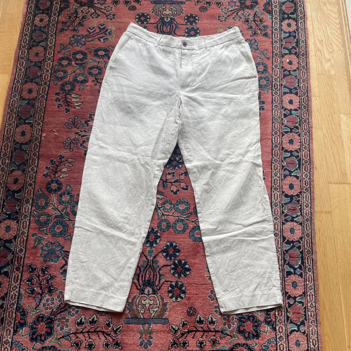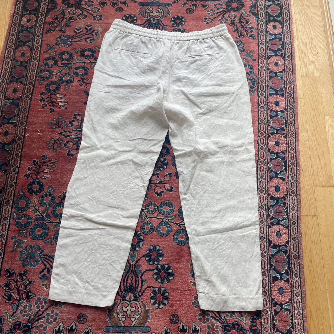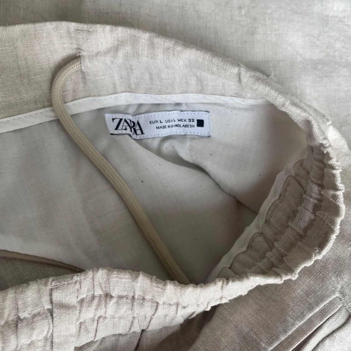 Supersnygga beiga linnebyxor från Zara perfekta till sommaren. Toppenskick utan defekter. Storlek Large men krympte i tvätten, så längden är kortare - passar någon som är runt 170.