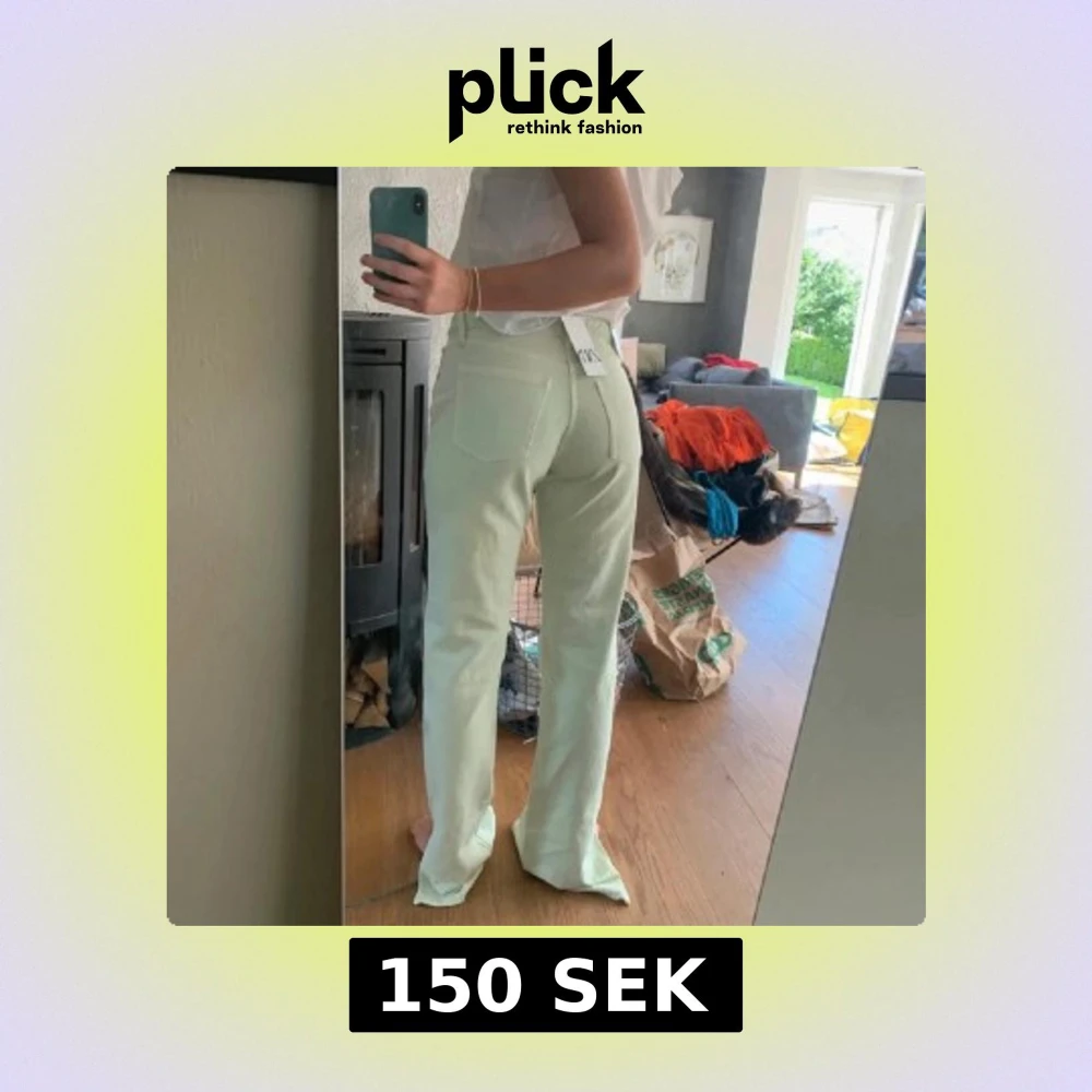 Ljusgröna/mint färgade raka jeans i mid waist från Zara. Jeansen har en slits vid benslutet. Kommer tyvärr inte till användning och bara ligger i garderoben numera. Detta är tråkigt då de verkligen är supersnygga!🧚✨ Pris kan diskuteras vid snabb affär!🪩 (Två första bilderna är lånade)