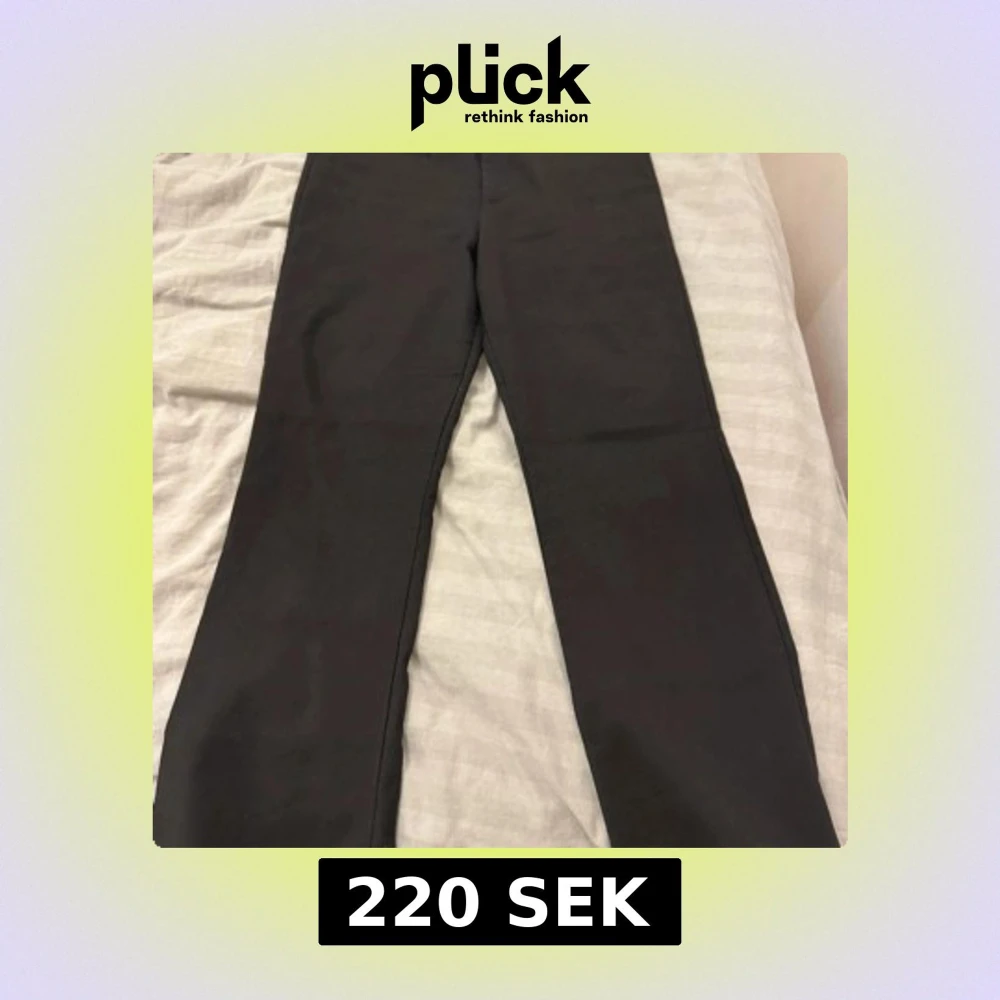 Svarta bootcut byxor från Zara i storlek M. Byxorna har hög midja och är tillverkade i ett stretchigt material som sitter snyggt och bekvämt. Perfekta för dig som gillar en stilren look med lite utsvängda ben.