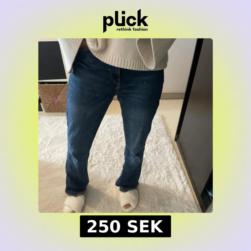 Snygga blå jeans med bootcut passform. Jag har normalt storlek s så dessa sitter lite löst på mig