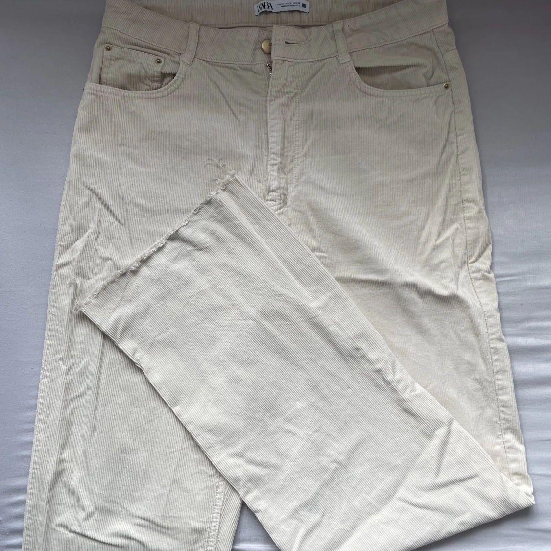 Säljer nu dessa par jeans i en super fin ljus beige färg, då de blivit för stora för mig, annars oroligt fin passform. Storlek M! Endast använd en gång.