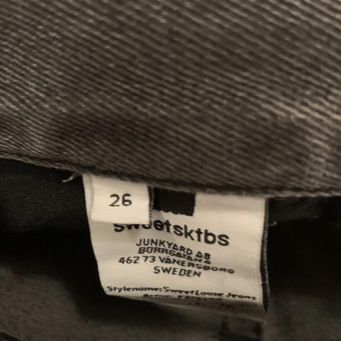 Dessa extremt populära och snygga jeansen säljer jag nu! Det är extremt hög efterfrågan på gråa jeans just nu så passa på. Från märket ”Sweet skateboards” och köpta på junkyard. Mörkgråa. Skick 9/10