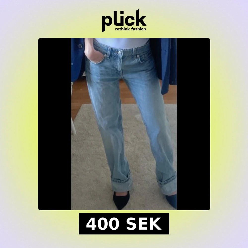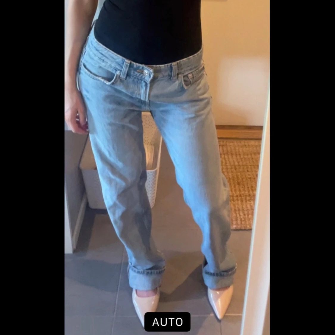 Säljer ett par klassiska raka jeans i ljusblå tvätt ifrån zara . Jag har vikt upp jeansen då de är lite för långa för mig som är 1,58😊Det är st 32🥰