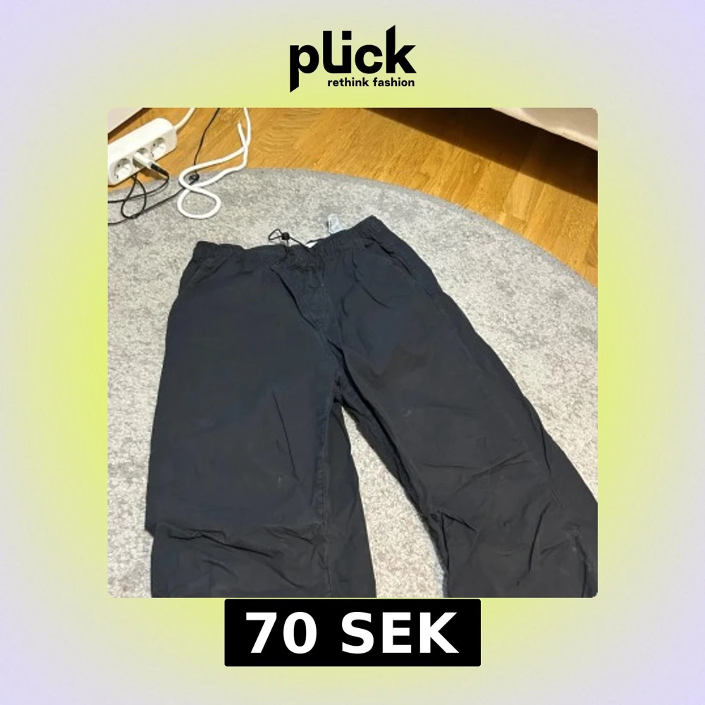 Svarta byxor från Zara med elastisk midja och justerbar snörning. Byxorna har raka ben och resår vid bensluten samt praktiska fickor både fram och bak. Perfekta för en avslappnad och stilren look.