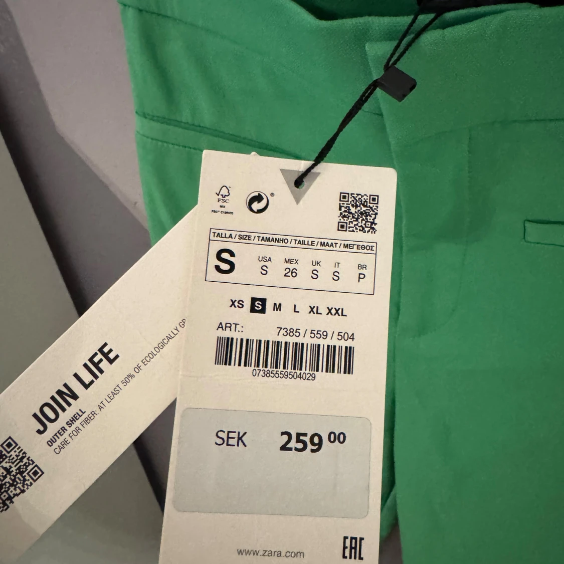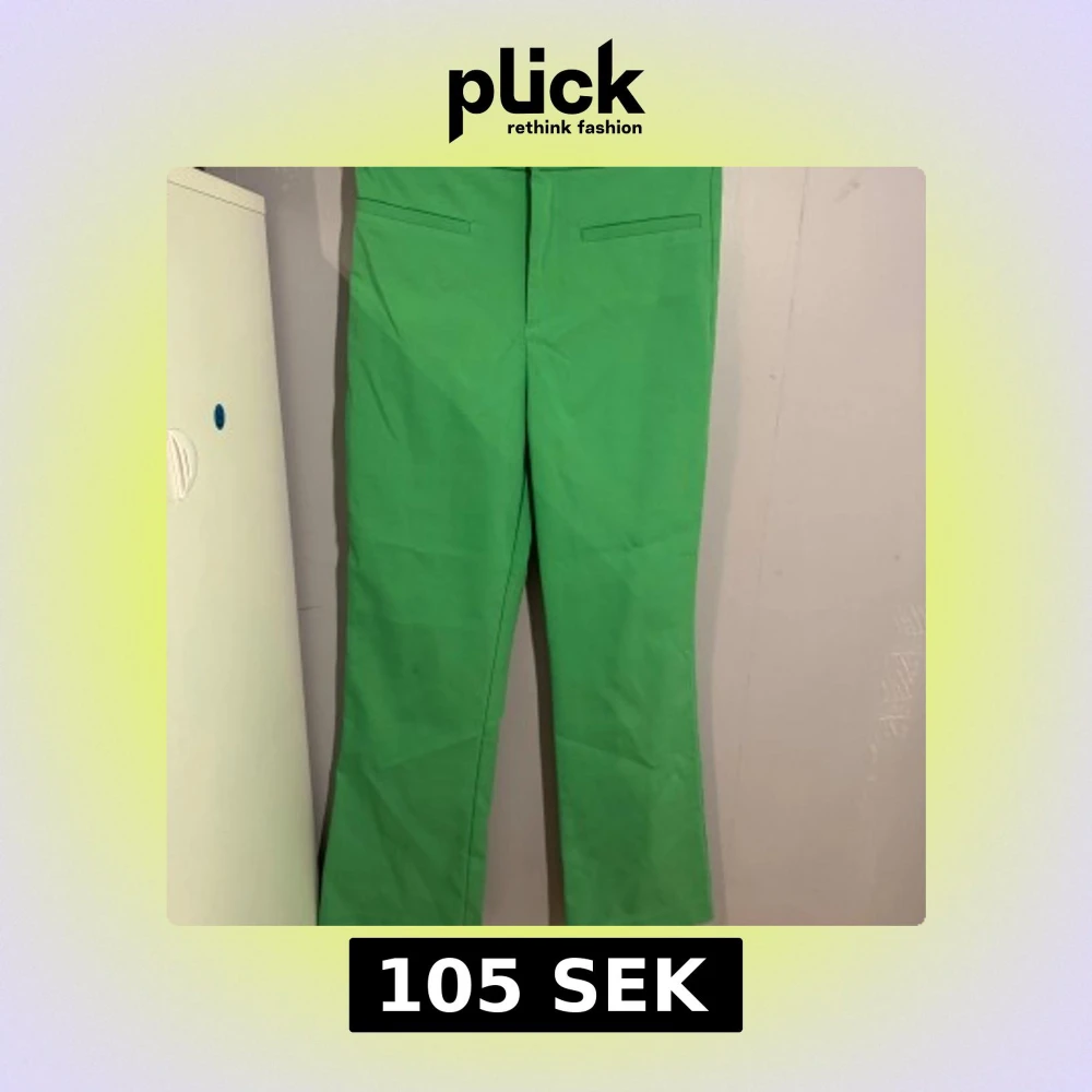 Snygga gröna kostymbyxor från Zara i storlek S. Byxorna har raka ben, diskreta fickor fram och är tillverkade i ett mjukt material med stretch. Perfekta för dig som vill sticka ut med färg och stil. Sitter tajt och formar kroppens former men på ett bekvämt sätt då de har mycket stretch. För bild på, skiivka ett meddelande