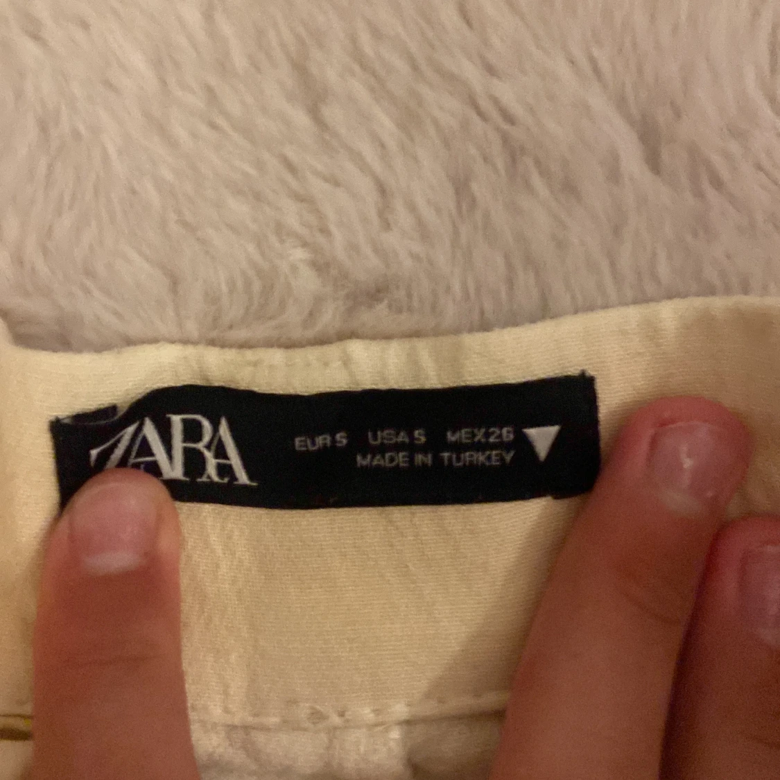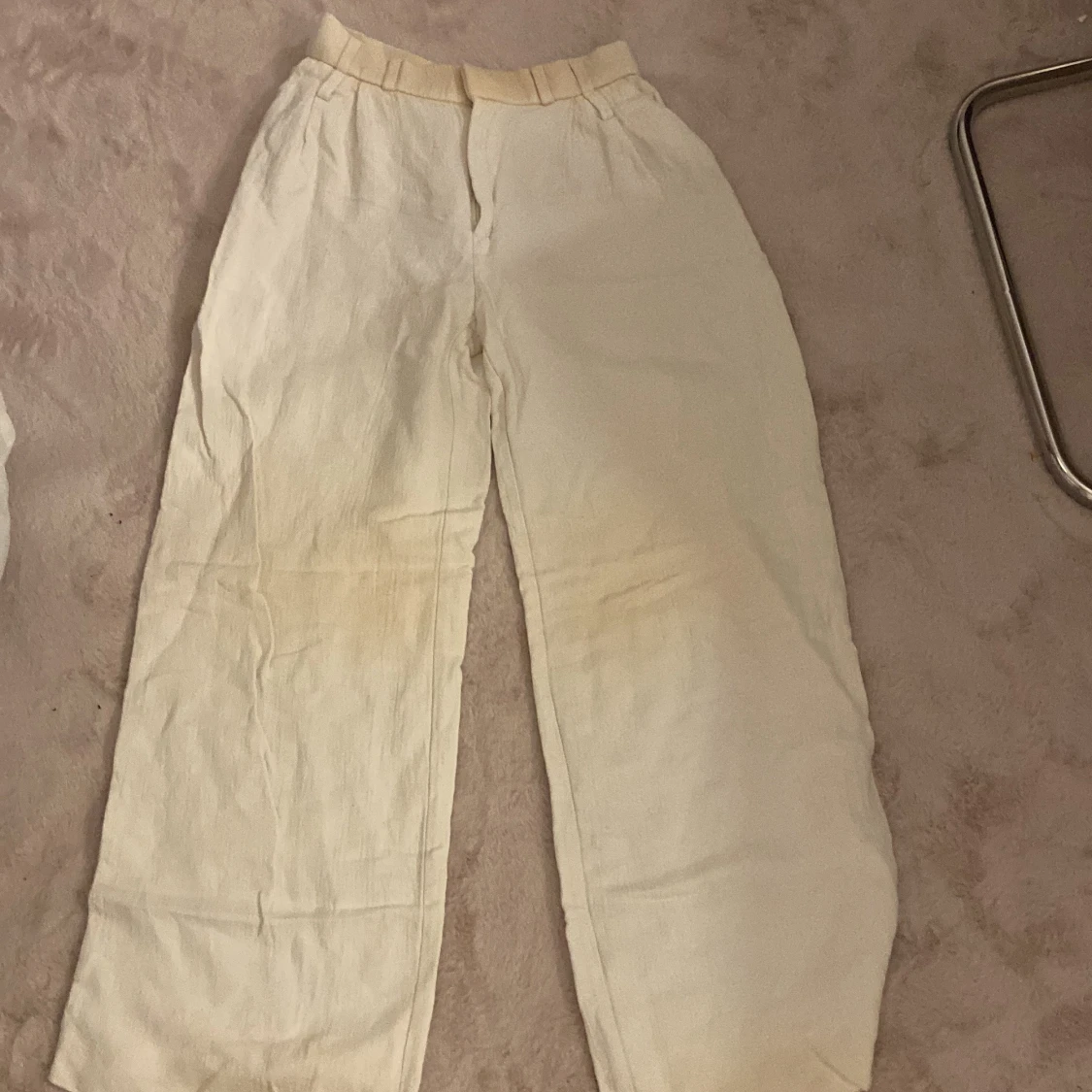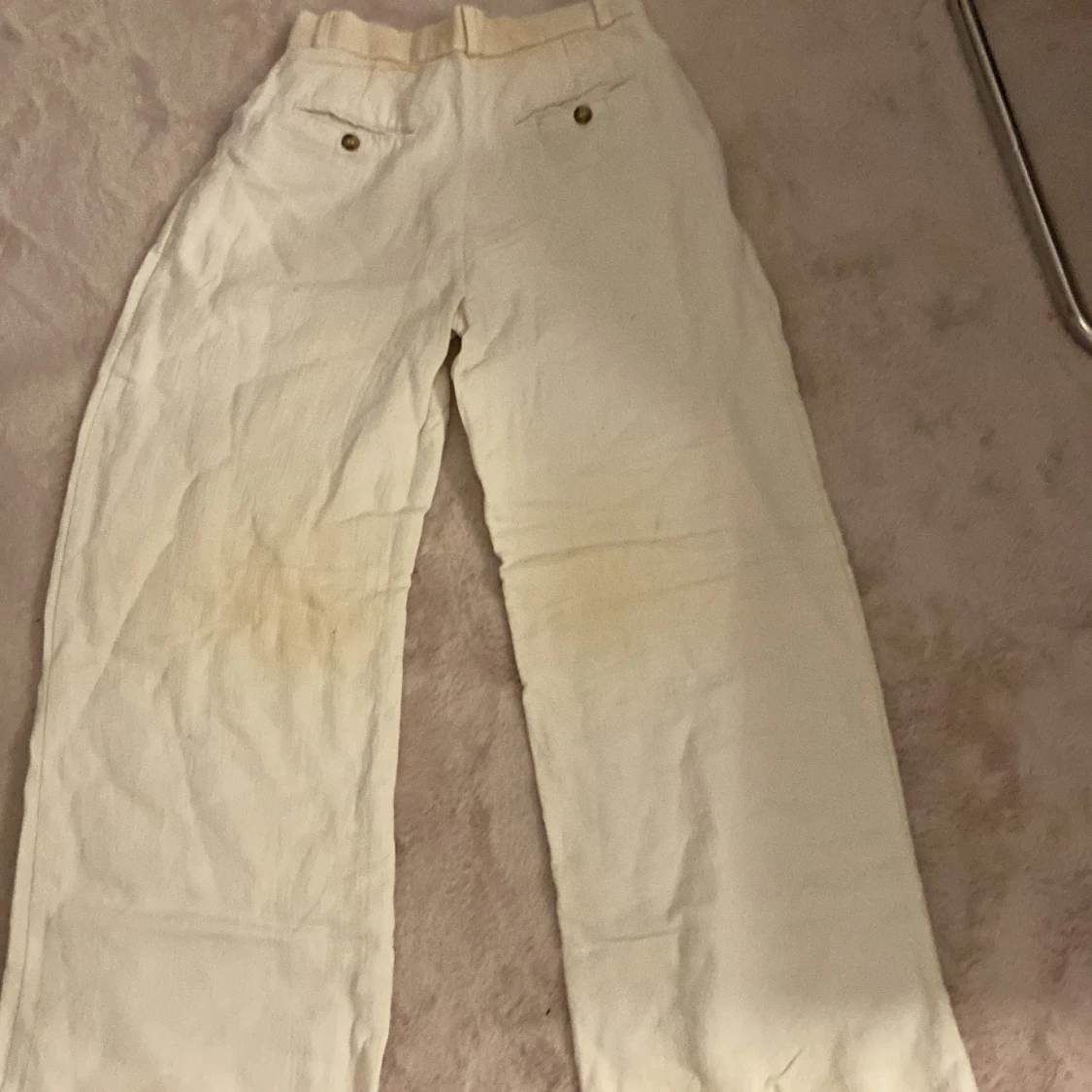 Ett par linne byxor får Zara i storlek S . märkerna är från brun utan sol. Tror att det går att få bort men vet inte.
