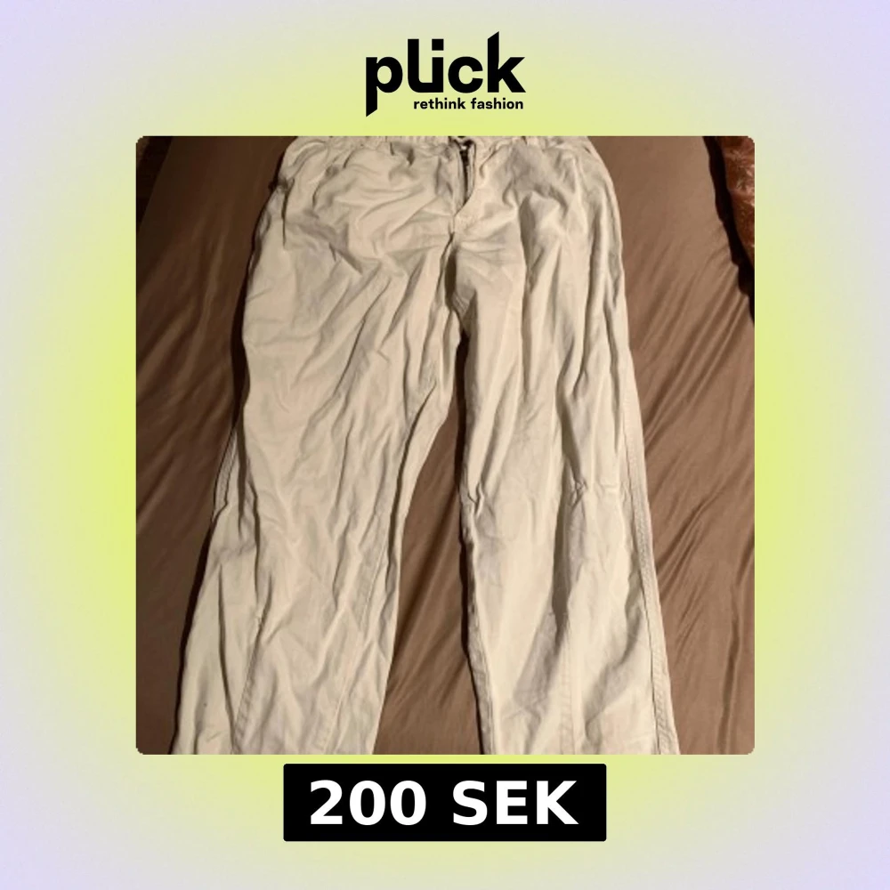 Säljer ett par bekväma beige byxor med dragkedja och elastisk midja. Perfekta för en avslappnad stil. De har en enkel design som gör dem lätta att matcha med olika outfits.