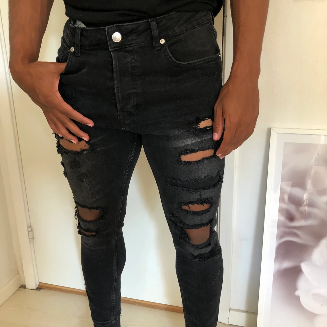 Slitna jeans från zara i storlek 44 som motsvarar W32 L32. Inköpta förra sommaren men aldrig varit använda, så de är i nyskick. Skriv för fler bilder!