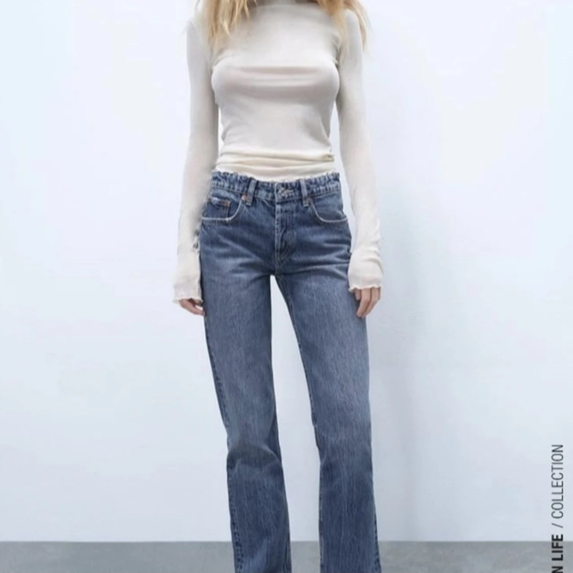 Säljer nu dessa superfina & populära straight mid Rise jeans från Zara som är slutsålda💕de har inte heller några defekter💕
