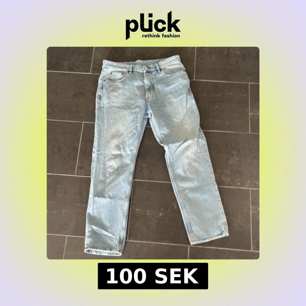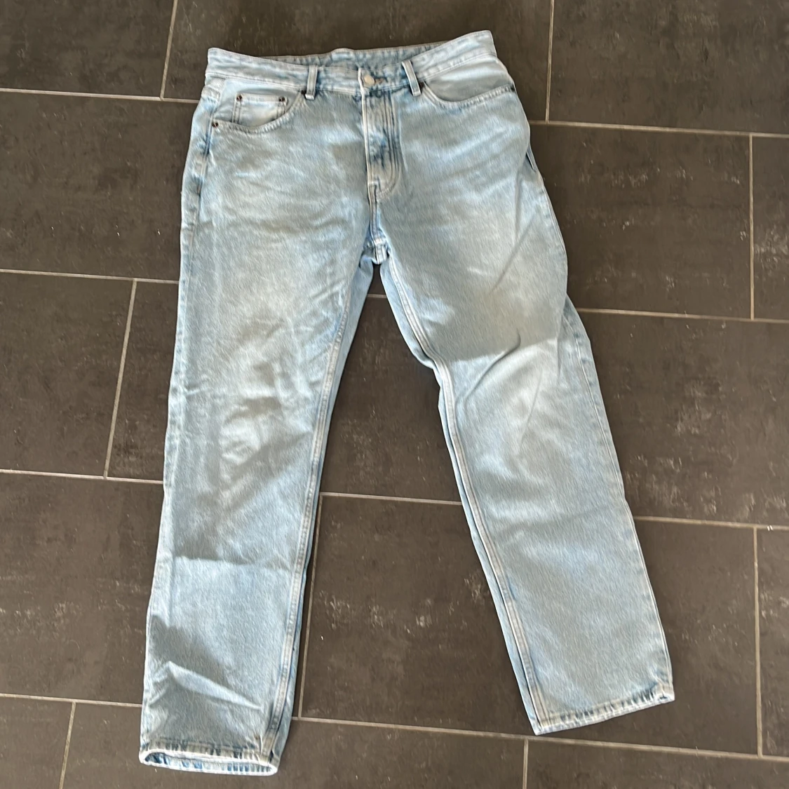 Säljer ett par ljusblå jeans från Zara med normal passform. Svårt att bestämma storlek eftersom Zara använder egna mått, men skulle gissa 32 i midjan. Inga defekter