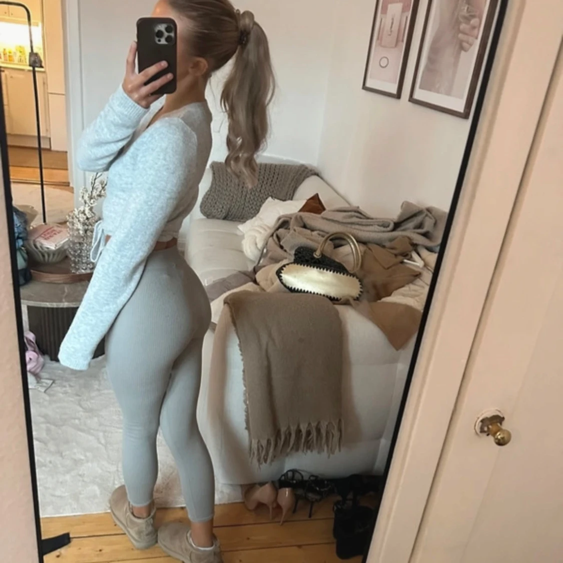Ljusgrå ribbade leggings från zara, strl xs/s 🤎
