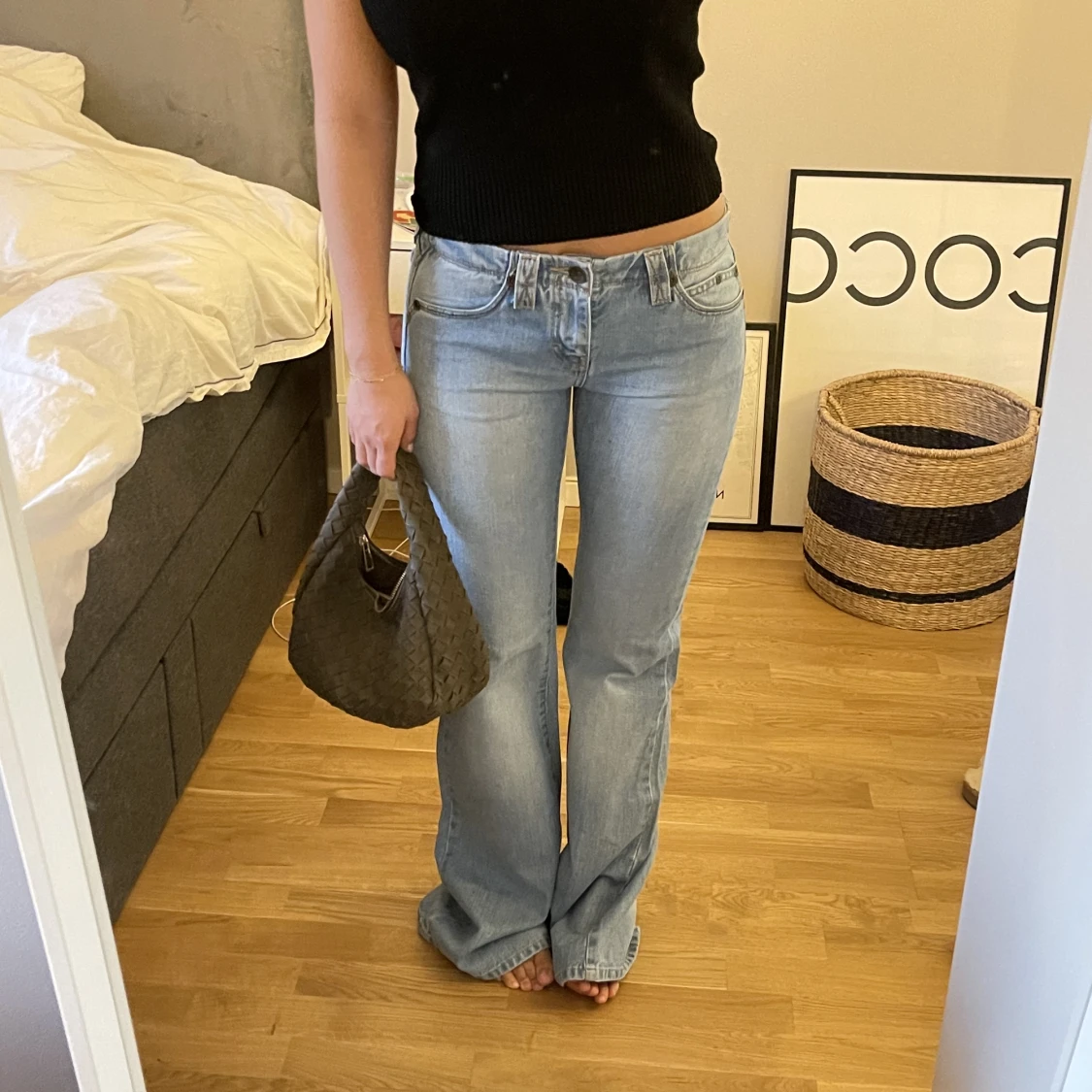 älskar färgen på dessa och dem är väldigt långa! För små på mig! stl 34/36 skulle jag säga💋🪩ställ frågor! innerbenslängden är 90