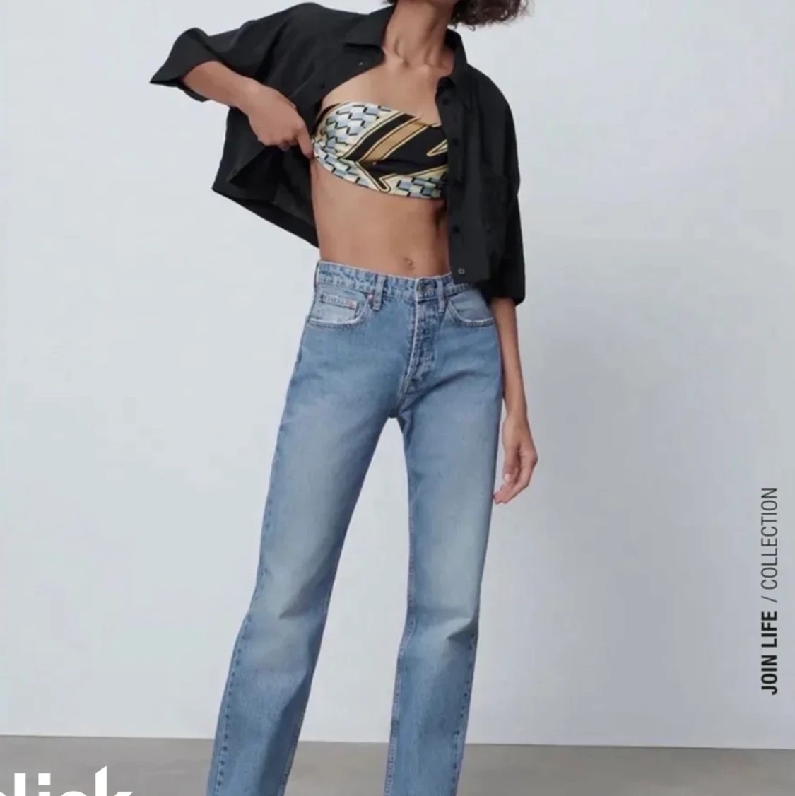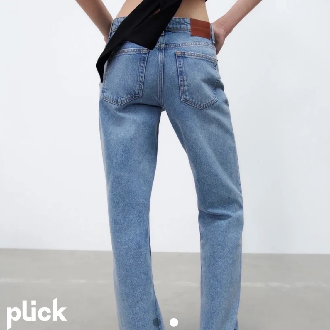 Säljer nu mina populära Zara jeans ❤️ är i storlek 34❤️ är upp sprättade längs ner på byxorna