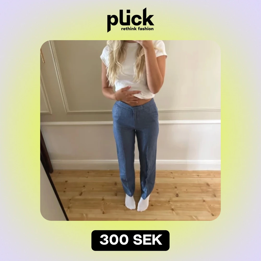 Blåa linnebyxor med lite skimmer i sig. Använt 1 gång. Storlek XS.