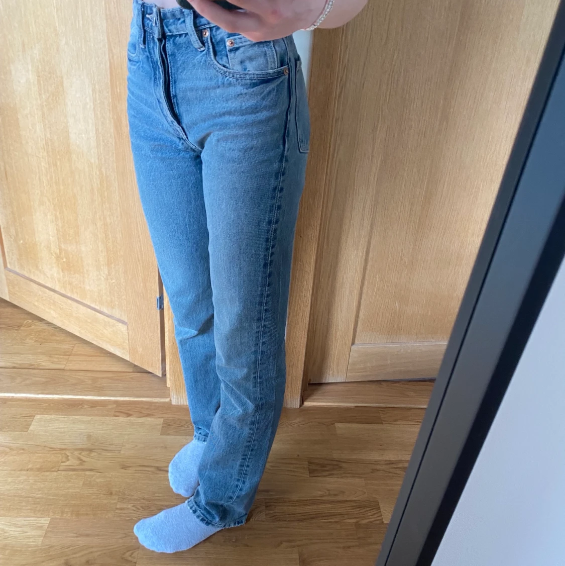 Zaras populära mid rise jeans i den gråblåa färgen. Storleken är 32 och passar i längden på mig som är 1.70 lång. Jeansen är väl använda men i gott skick💗