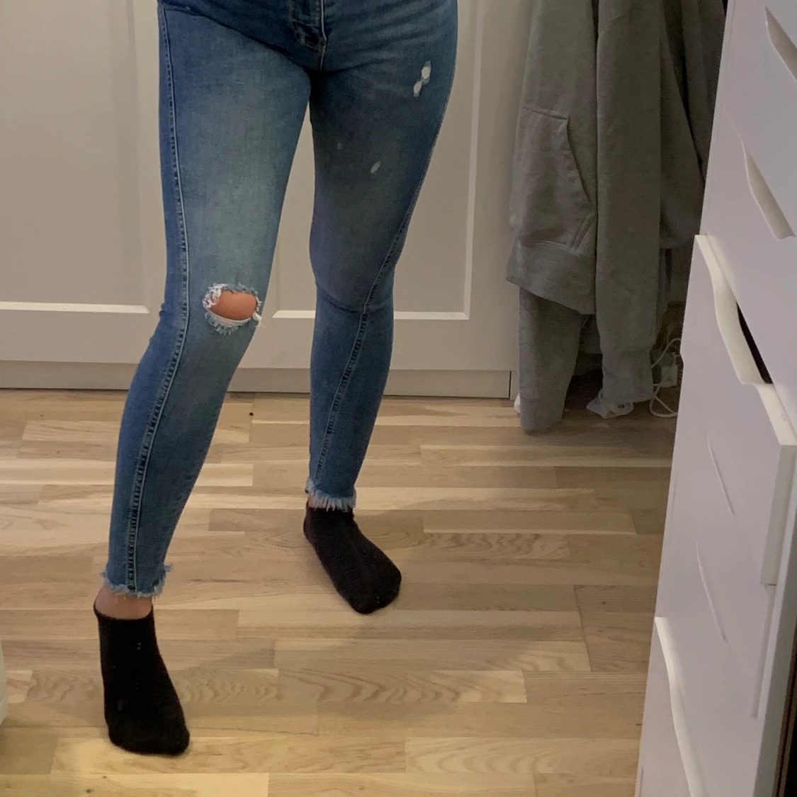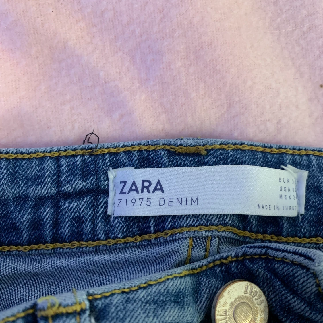 Ett par jeans från zara med liten slitning på ena knät. Sömmarna går lite inot (design)