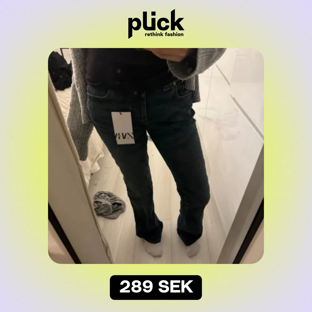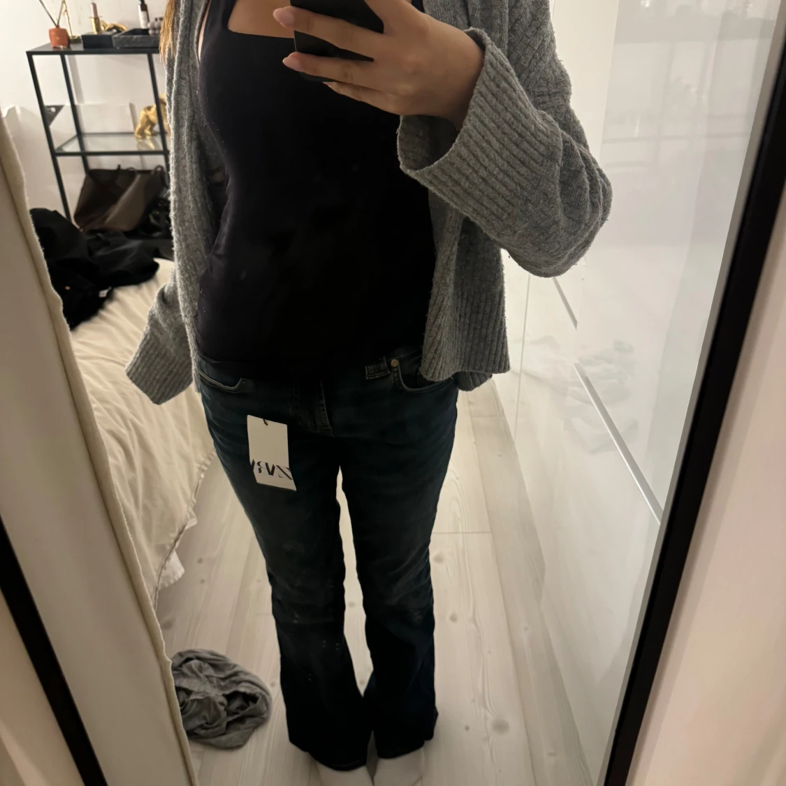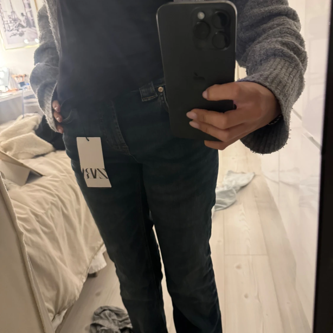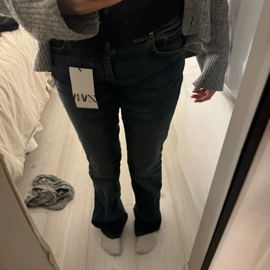 Ett par bootcut jeans från zara som är grå blåa, aldrig använda🥰 prislapp på🥰